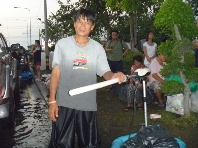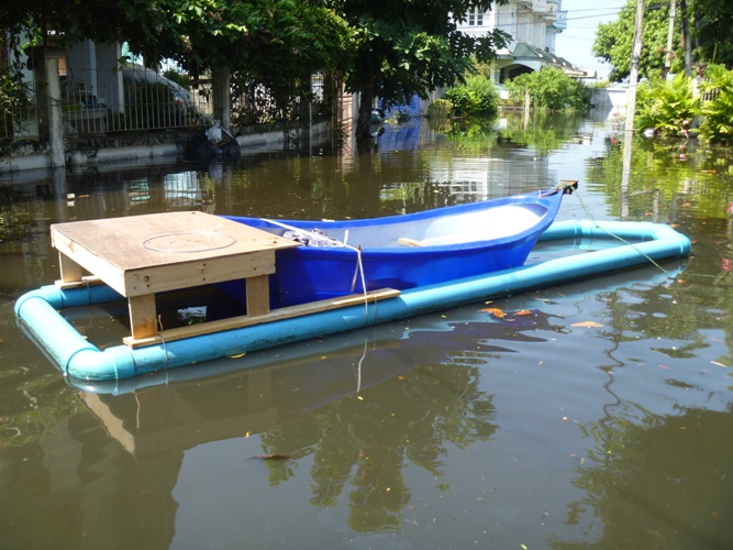 เอามาคู่กันแล้ว ไม่ต้องออกแรงยกมาก เพราะน้ำท่วมแนวกั้นด่านแรก (รั้ว) น้ำสูงเท่ากันแล้ว...