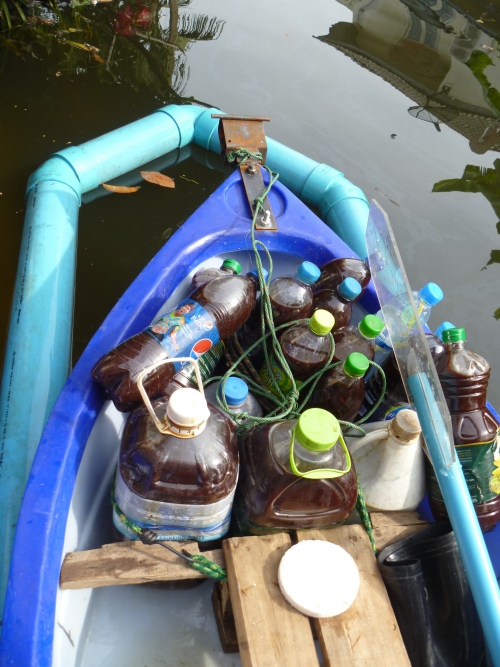 เอาเรือเฉพาะกิจออกไปอีกรอบ น้ำน้ำบำบัด EM มาบำบัดน้ำเน่าที่บ้าน...