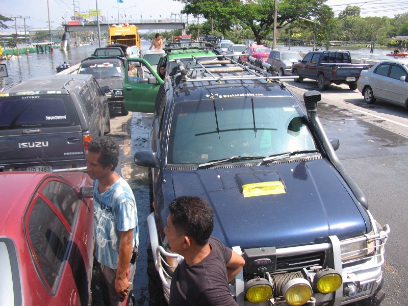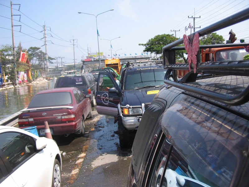 มีรถจอดหนีน้ำบนสะพาน เลยขอเบียดหน่อย