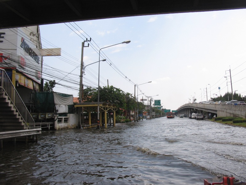กม.3-4 ระดับน้ำบนถนนไม่สูงมาก