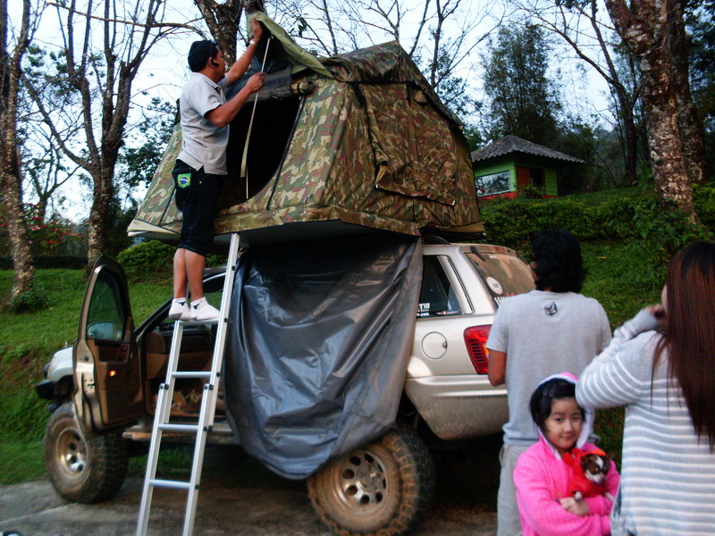 พี่เอ ซื้อเต็นท์หลังคาจากลุงศักดิ์มาทริปนี้โดยเฉพาะ แบบว่าชอบที่สูง