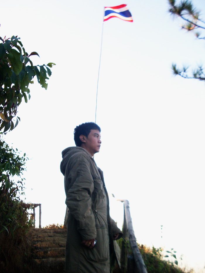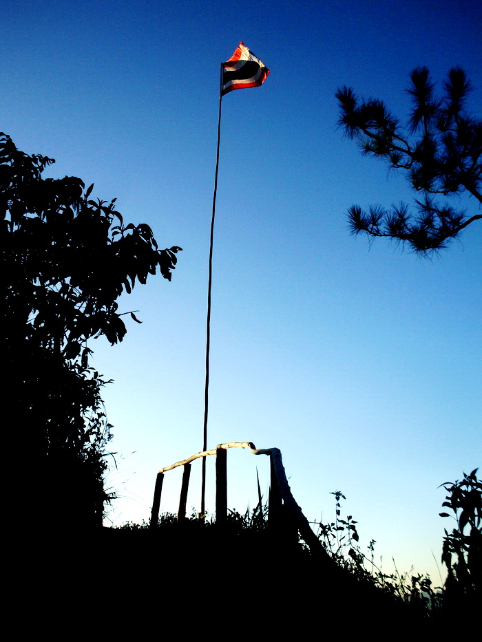 บนยอดมีธงชาติทั้งหมด 4 ต้น เพิ่งถึงธงแรก