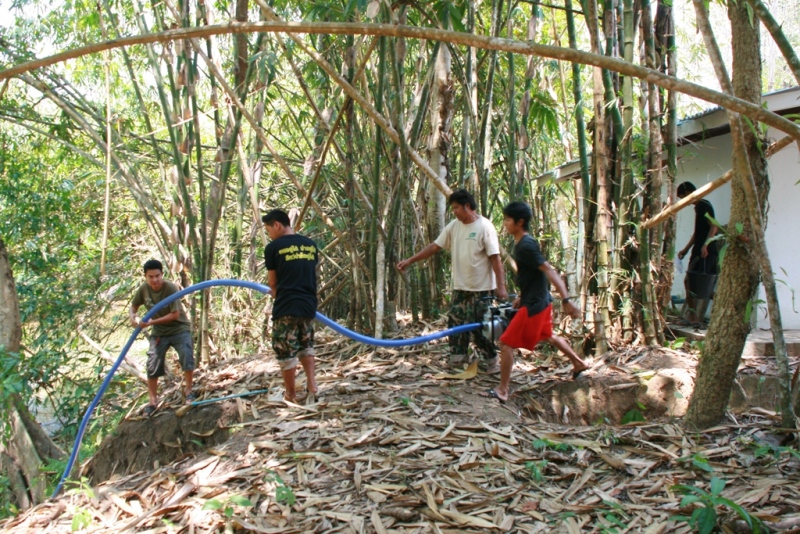 ต้องย้ายให้ใกล้น้ำแบบนี้แหละ แต่เครื่องยนต์ไม่น่ากระจายง่ายๆนะ...