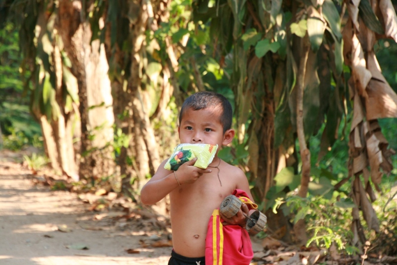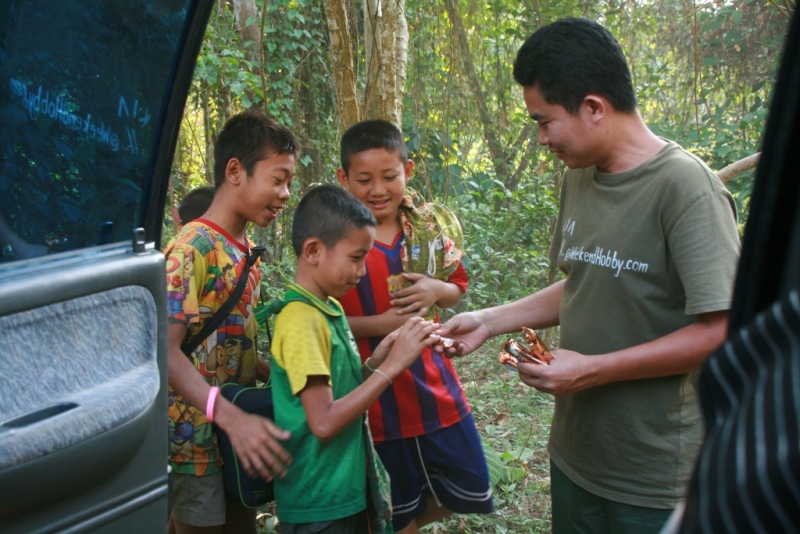 หนูได้ขนม ในมือมีล้อเก่าๆติดมือแน่น