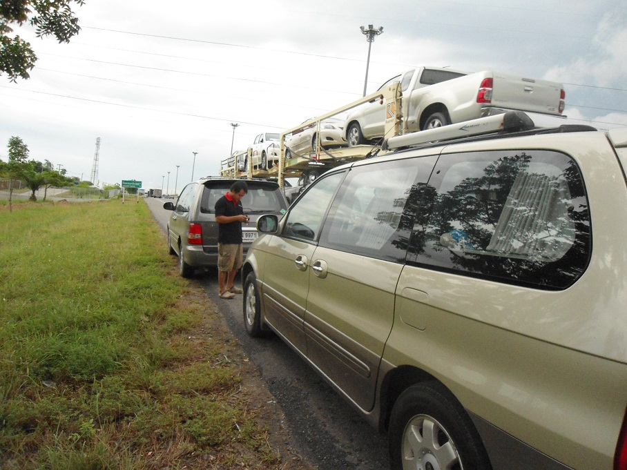 ภาพแรกกล้องที่ผมพกถนัด ระหว่างจอดรอที่มอร์เตอร์เวย์ รถสิบแปดล้อว่าใหญ่แล้วยังหลบให้คุณใหญ่..