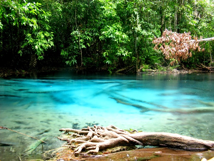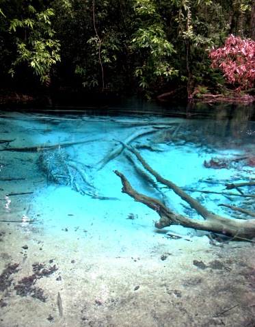 นี่ไหงที่มาของน้ำในสระมรกต สระน้ำผุด สวยจริง ยิ่งแสงส่องลงมา