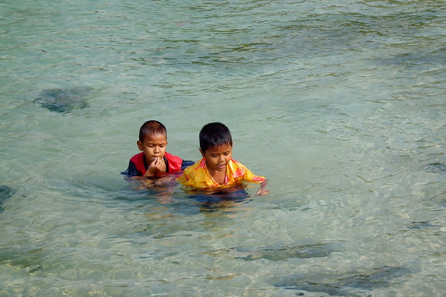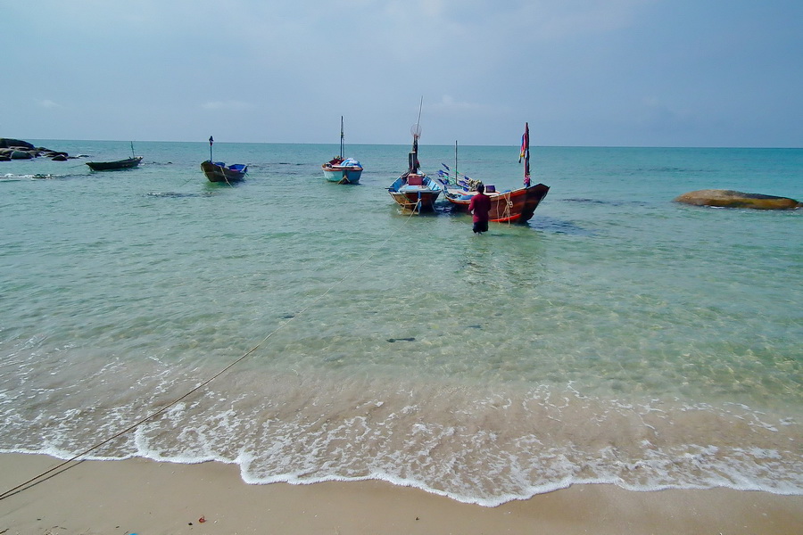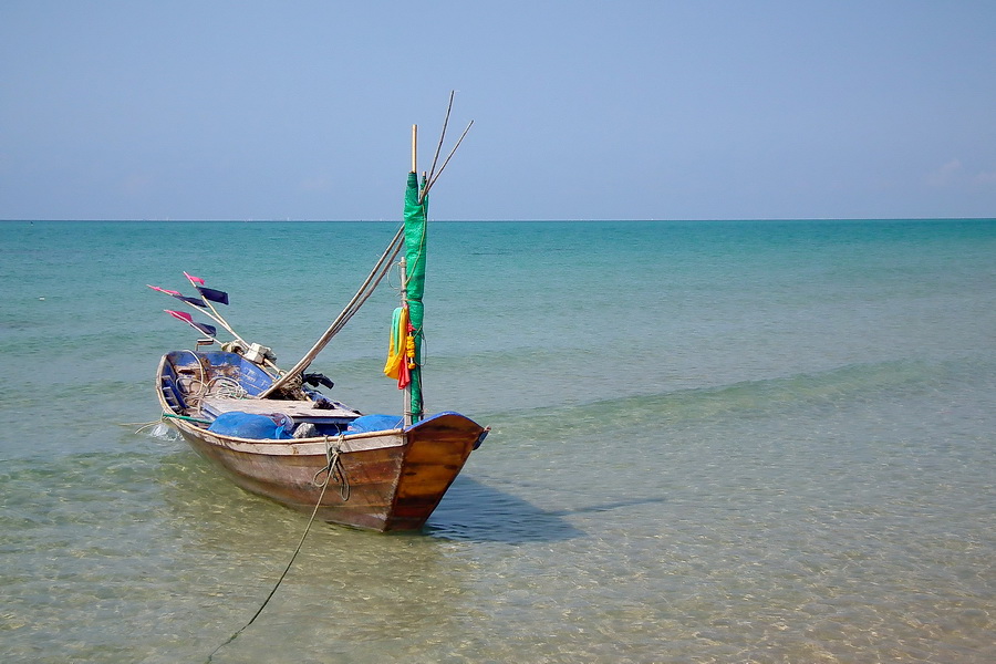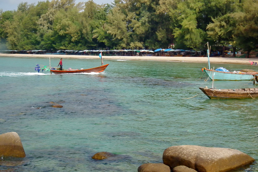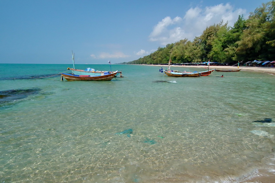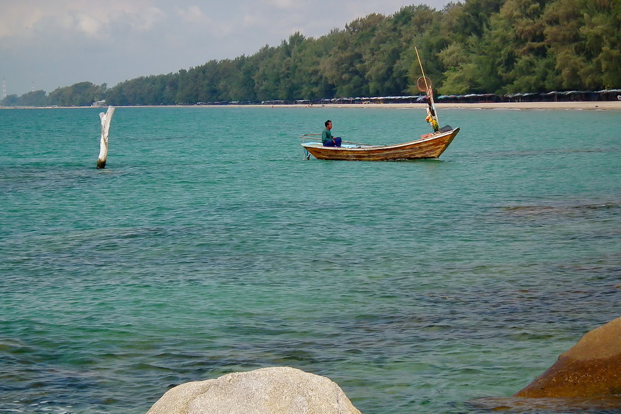 ได้เวลาเดินกลับที่พัก ผ่านเรือลอยบนน้ำใส