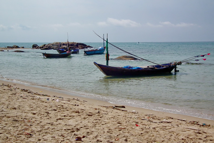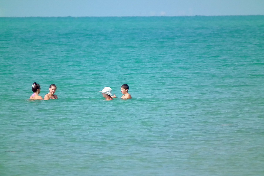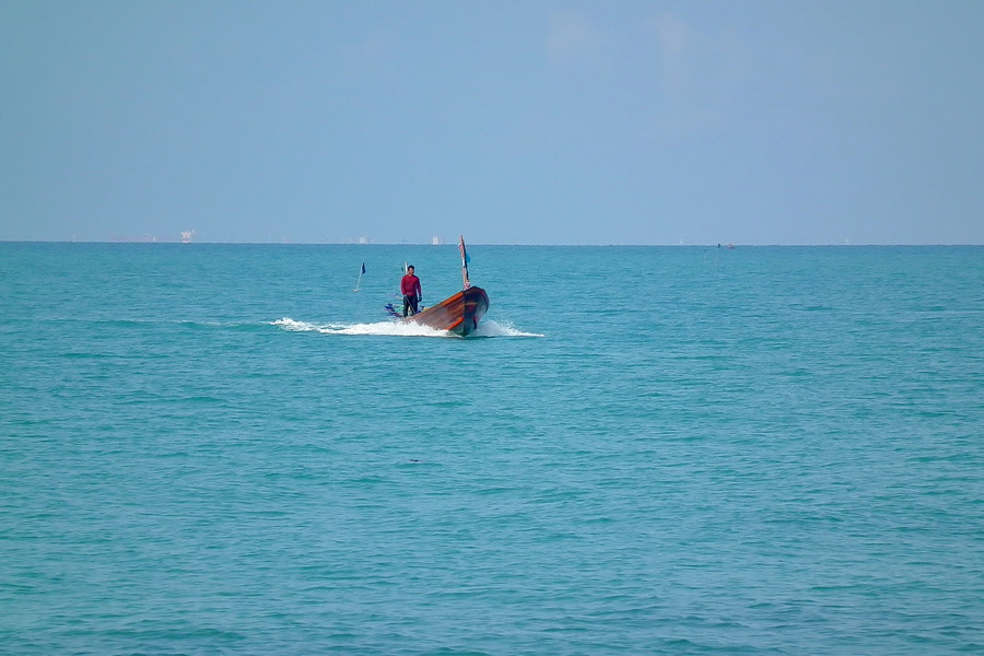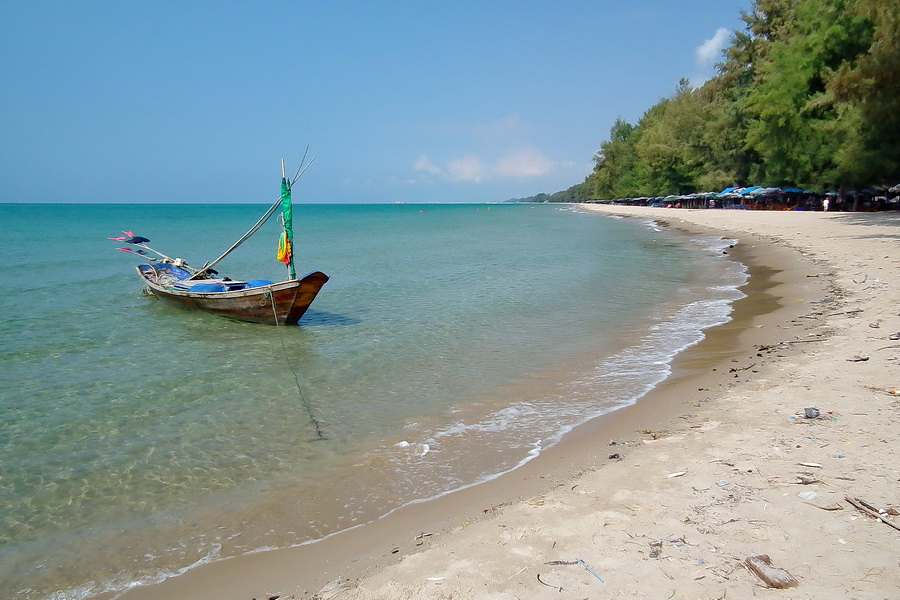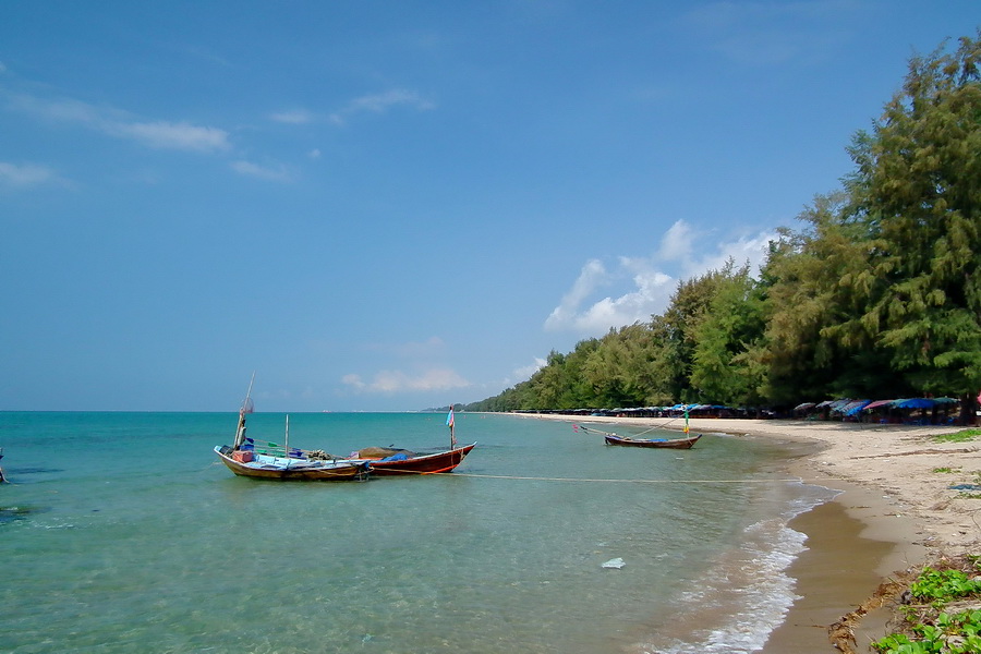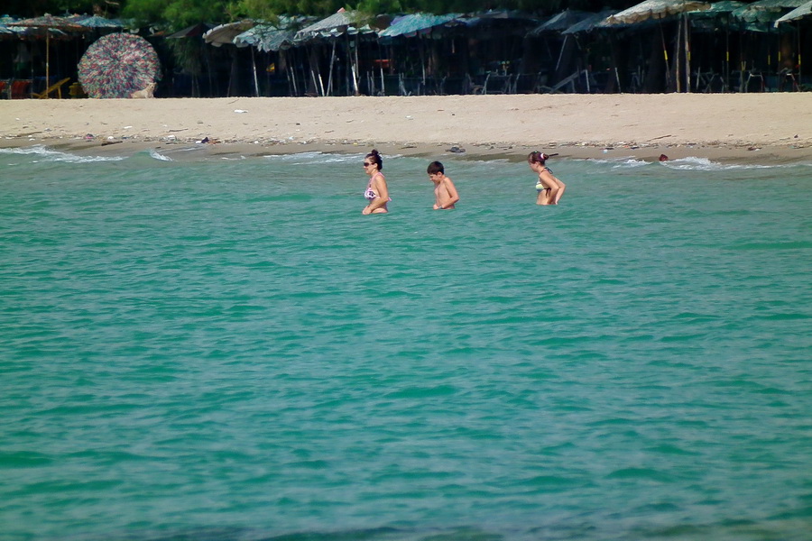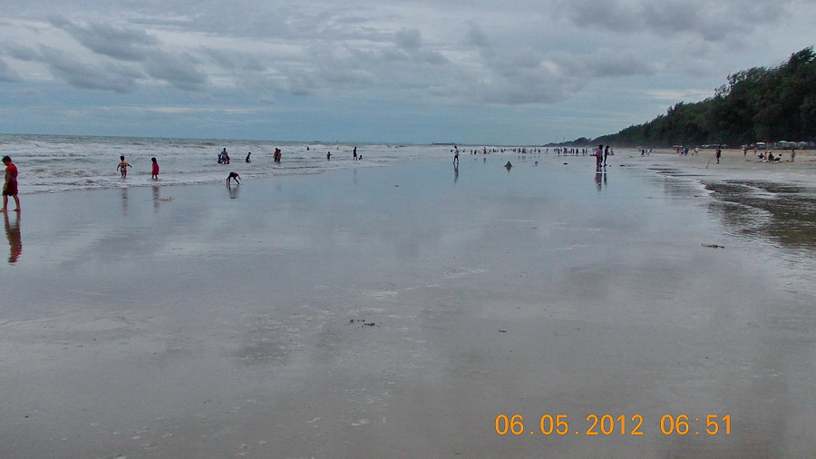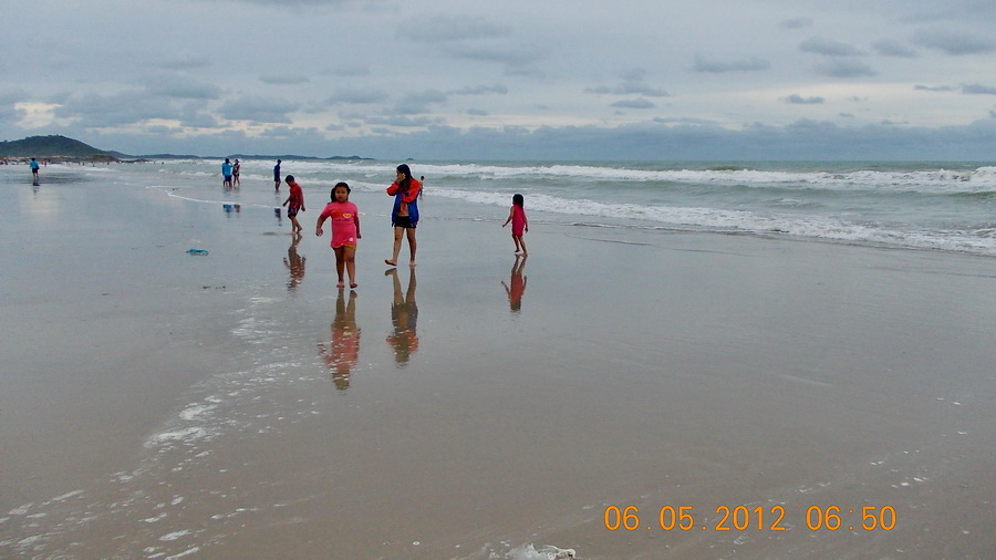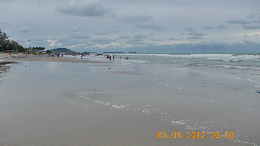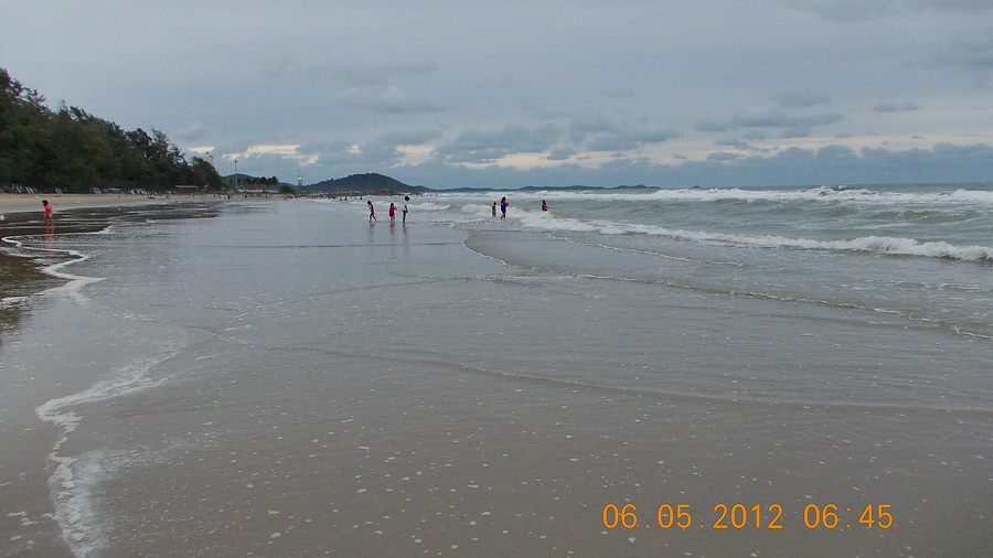 หาดทรายเรียบกว้าง คลื่นค่อนข้างแรงแต่ดูแล้วเล่นกันอย่างสนุก