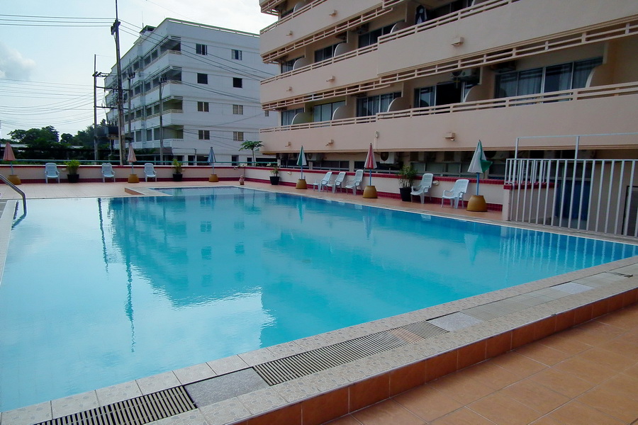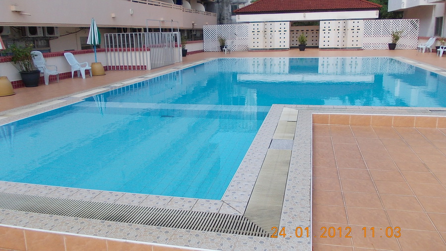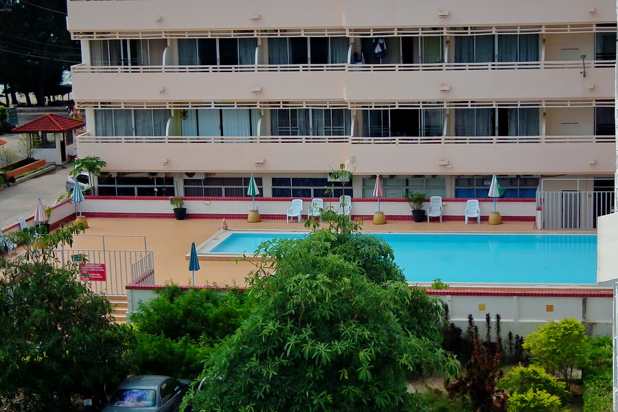 จากห้องมองไปที่สระน้ำ ยังไม่มีใครลงเล่น