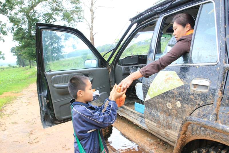 เด็กนักเรียน ศศช นุกะโถะวา เดินกลับบ้านแวะแจกขนม...