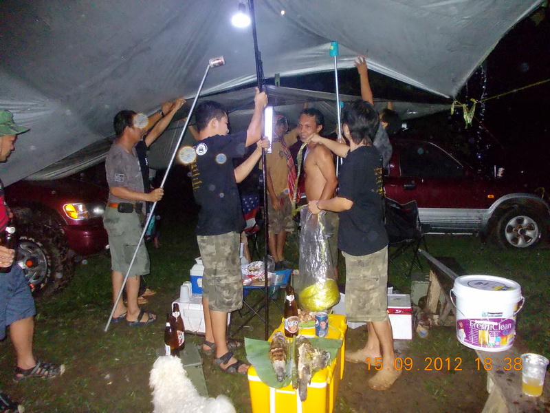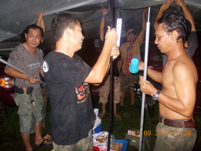 รูปสุดท้าย มือกีตาร์ก็ต้องเลิกวงมาช่วยมัดเสาค้ำฟลายชีต
