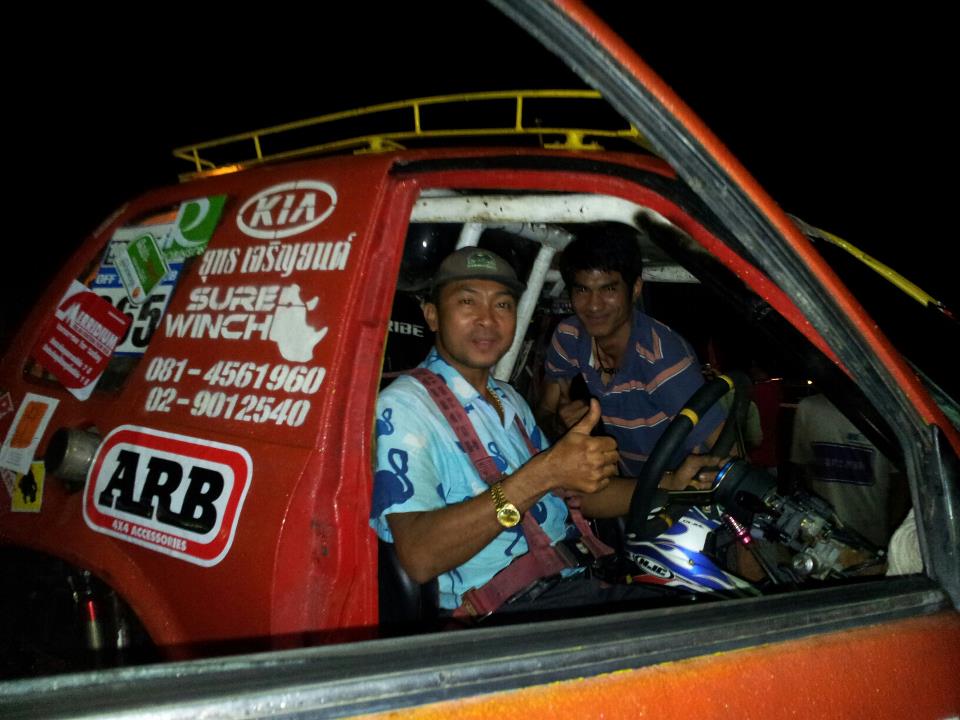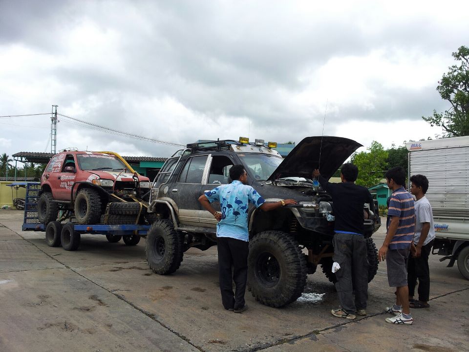16.25น. ทีมแข่งถึงบ้านพี่หรั่ง จ.ตรัง เอารถลงเทรเลอร์ แล้วไปแห่พิธีเปิด...