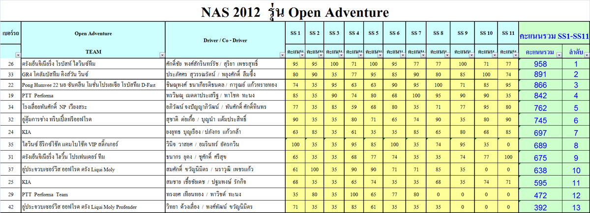 ผลคะแนน รุ่น OPEN ADVENTURE...