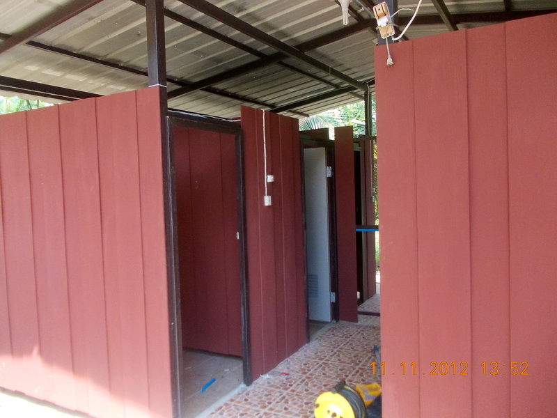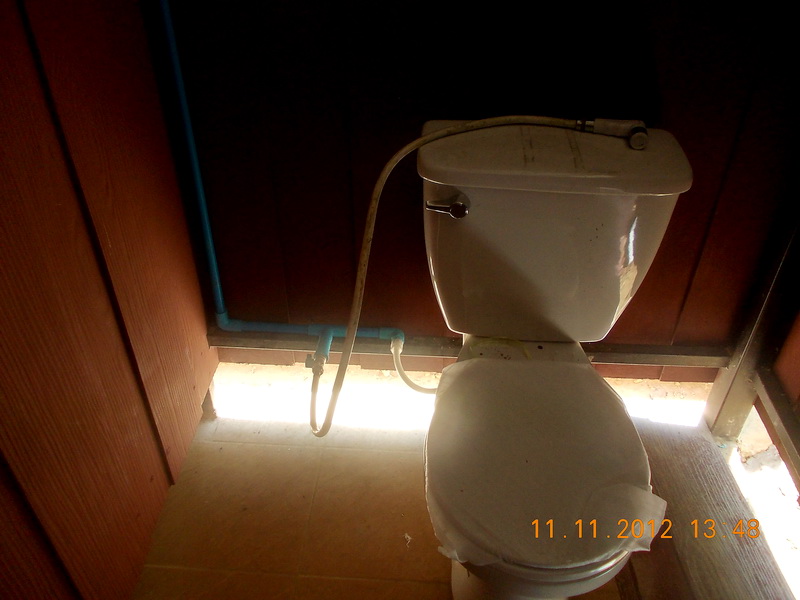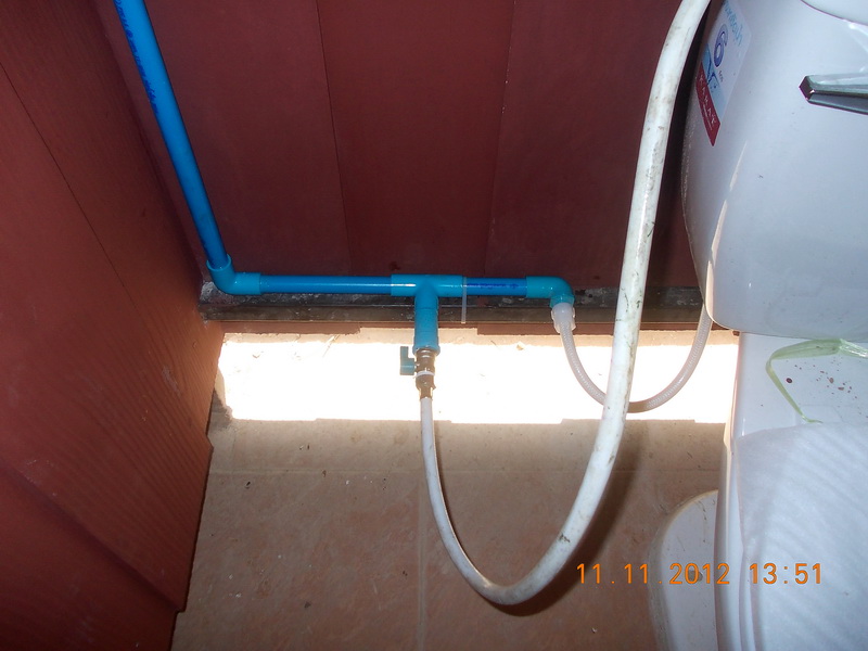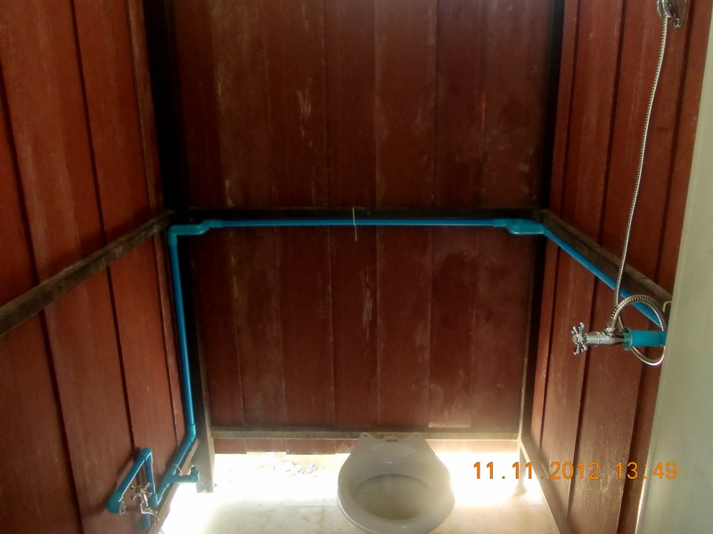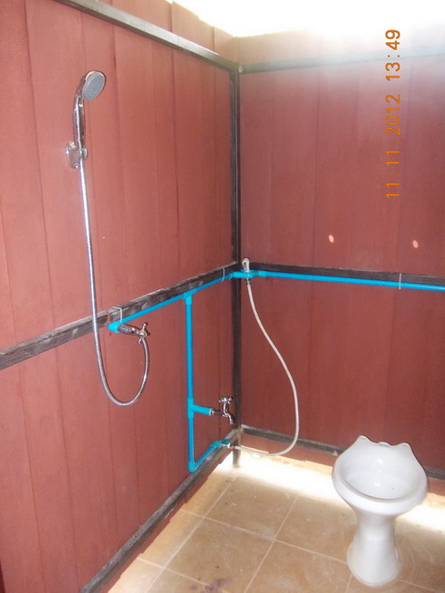 ติดแผ่นกั้นระหว่างห้องด้านล่างชนพื้นกันน้ำกระเด็นเข้าหากันด้วย ส่วนประปาเหลือต่อเข้ากับท่อเมนจ่ายน้ำก็เสร็จเรียบร้อย สุดท้ายแต่งปูนเก็บขอบๆ และทาสีส่วนที่เหลือทั้งหมดไปอีกครั้งคงจะจบ