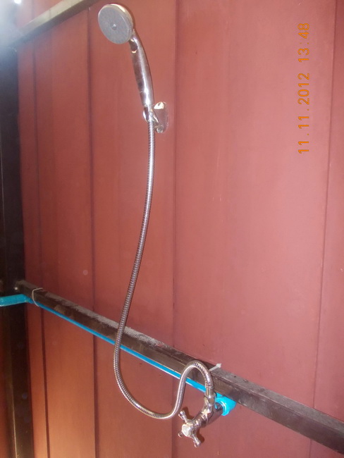 หลังอาหารเช้าจัดการอัดกาวและยึดท่อประปาเข้าที่ ตอนบ่ายภูผามาช่วยใส่สายฉีด,ฝีกบัวฯลฯ