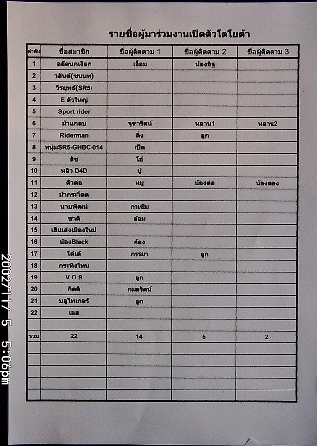 เจี๊ยบที่อยู่ตำแหน่งที่สามทางขวา คือคุรรังสรร แห่งเกีย บางใหญ่ในอดีตครับ งานนี้ผมกล่อมแกไปเอง ฮ่า ๆ