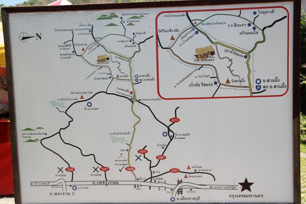 จากนั้นใช้เส้นทาง สวนผึ้ง ยางหัก ห้วยยางโทน ปากท่อ พระราม2 ปากเกร็ด