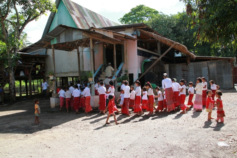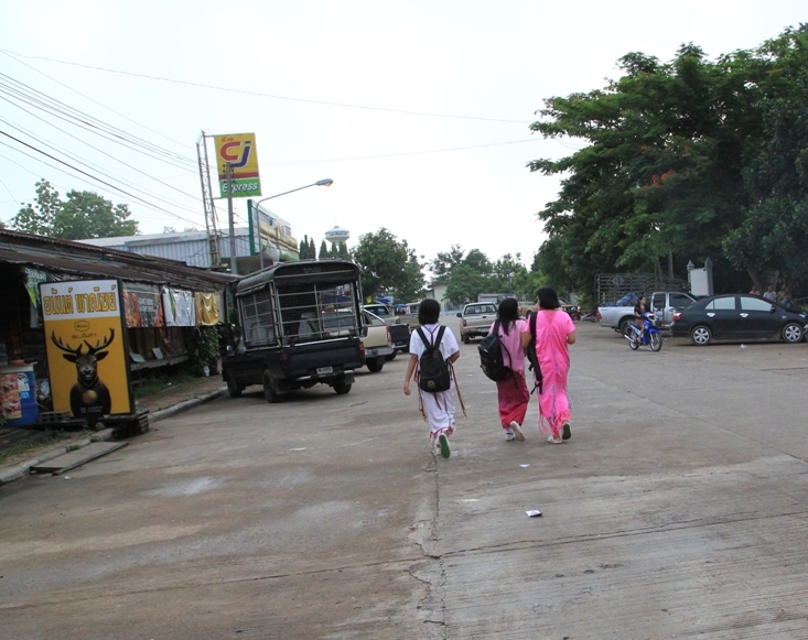 ถึงตลาดสังขละ วันนี้วันศุกร์นักเรียนแต่งกายประจำพื้นเมืองไปเรียน ดูดีจริงๆ