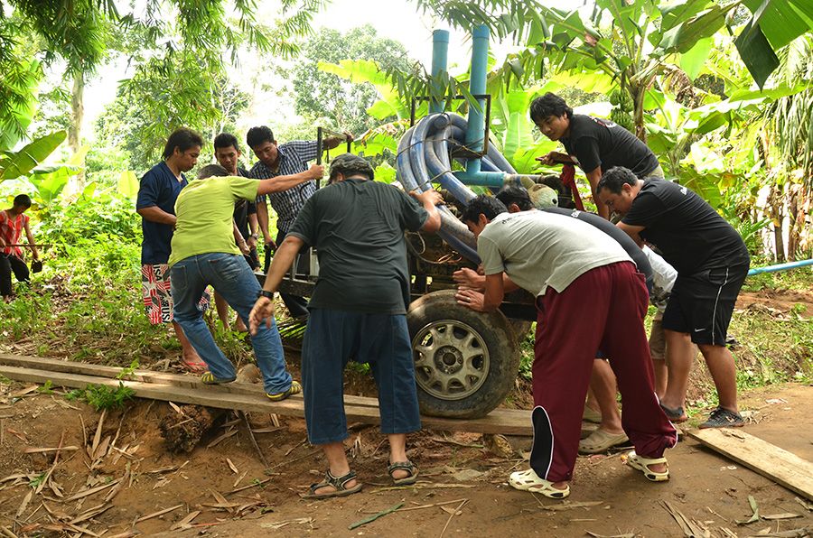 ต่อระบบเสร็จก็เติมน้ำล่อก่อนเริ่มเดินเครื่อง