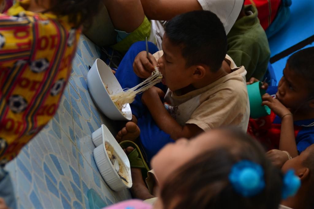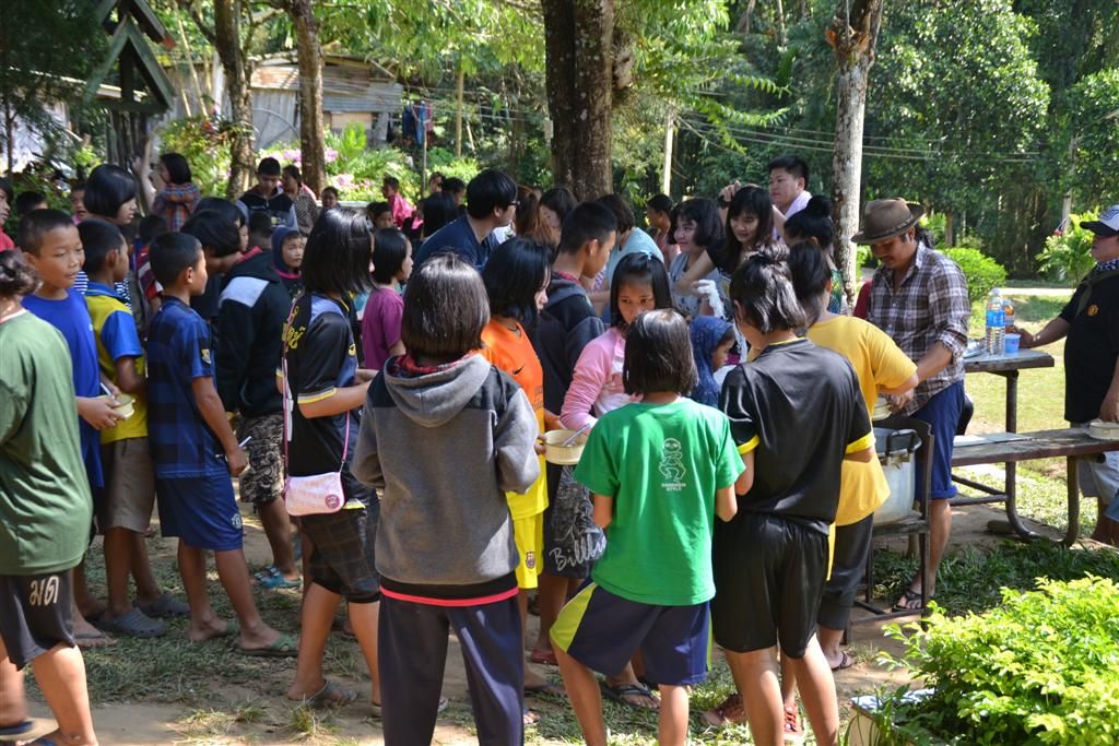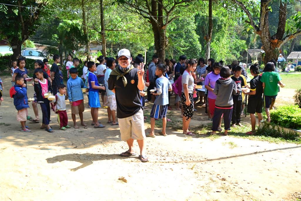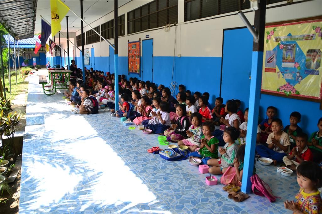 เด็กๆนั่งรอขอบคุณพี่ๆที่มาเลี้ยงอาหาร ชื่นใจครับ