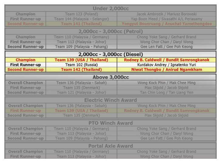 Mr.Rod+ช่างอั๋น ได้รางวัลรองชนะเลิศ Overall , รางวัลชนะเลิศในรุ่น 2000-3000 CC และ รองชนะเลิศประเภท Electric Winch...