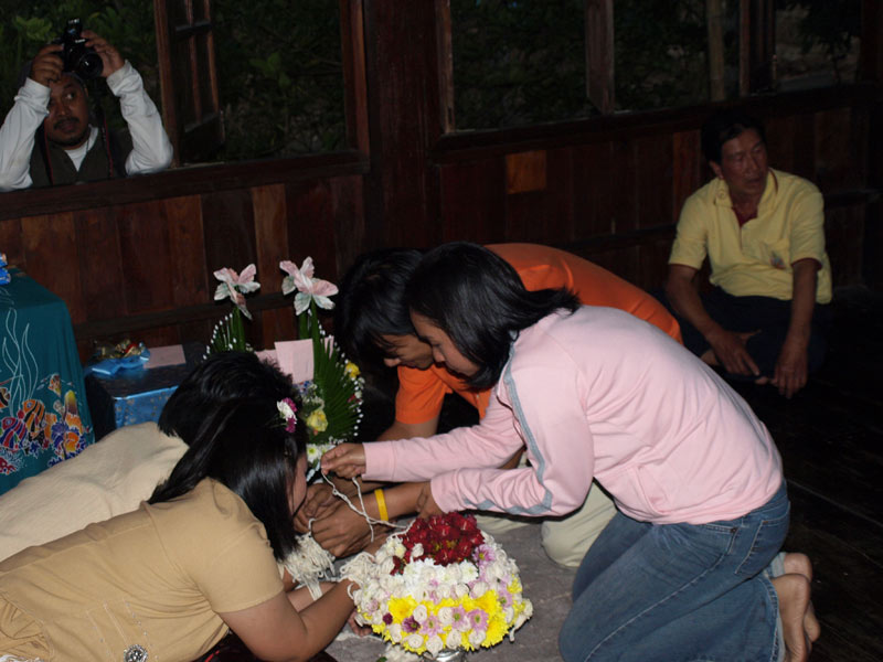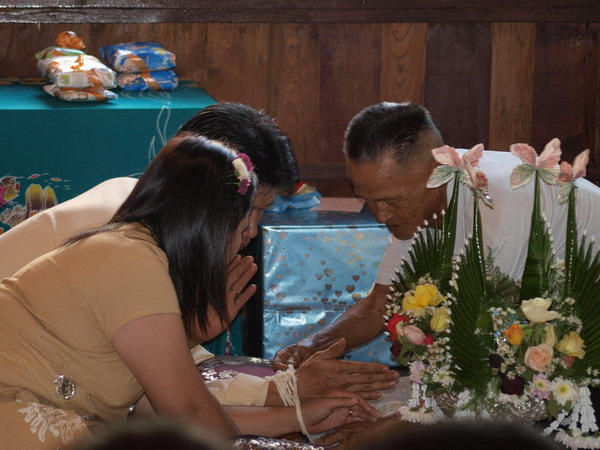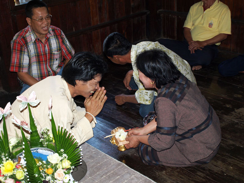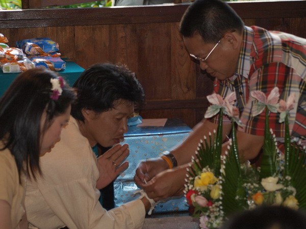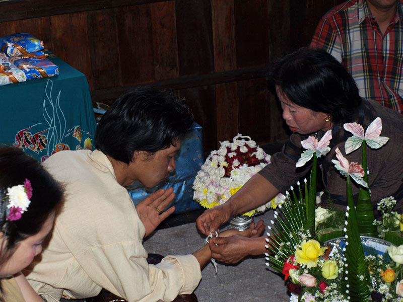 คำตอบที่ 85 เสร็จแล้วผู้ใหญ่ก็ผูกข้อไม้ข้อมือตามธรรมเนียม