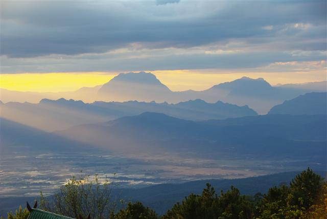 คำตอบที่ 27 ไปถึงพร้าวเวลาประมาณ16.00น.พอดีแวะนมัสการวัดหลวงปู่แหวนเลยเสียเวลาไปประมาณชั่วโมงนึงแต่ก็ยังก่อนถึงฤกษ์พิธีการ(รูปนี้ถ่ายหลังบ้านงานยอดเขาที่เห็นไกลๆก็คือดอยม่อนล้านที่เราจะไปกัน)