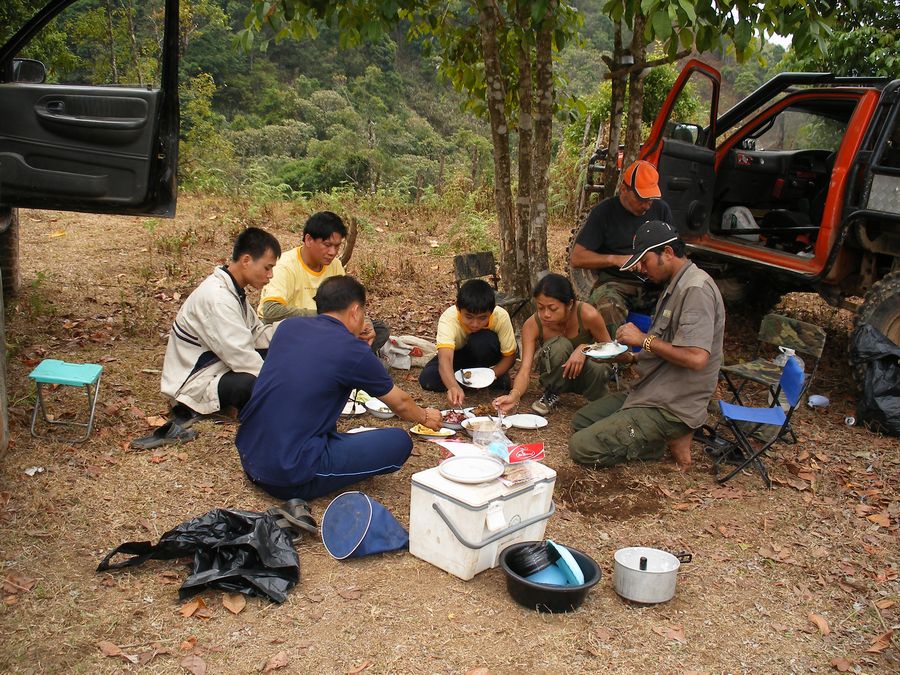 วันสอง รถลุงร็อด เฟืองเกียร์รูดก่อนถึงแม่น้ำขุนสอง ลากรถลุงร็อดมาแค้มป์พักที่ริมน้ำขุนสอง ผมออกไปรับช่างอั่นเอาอะไหล่มาส่งที่ท่าสองยาง รถผมรอยเชื่อมกันเซแตก...