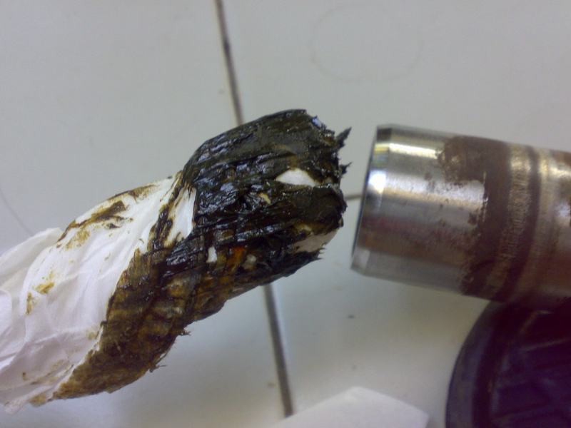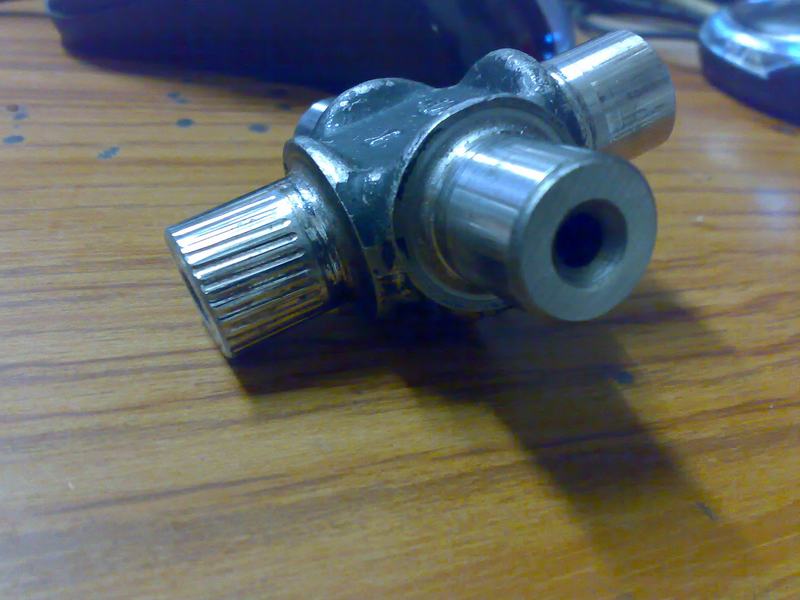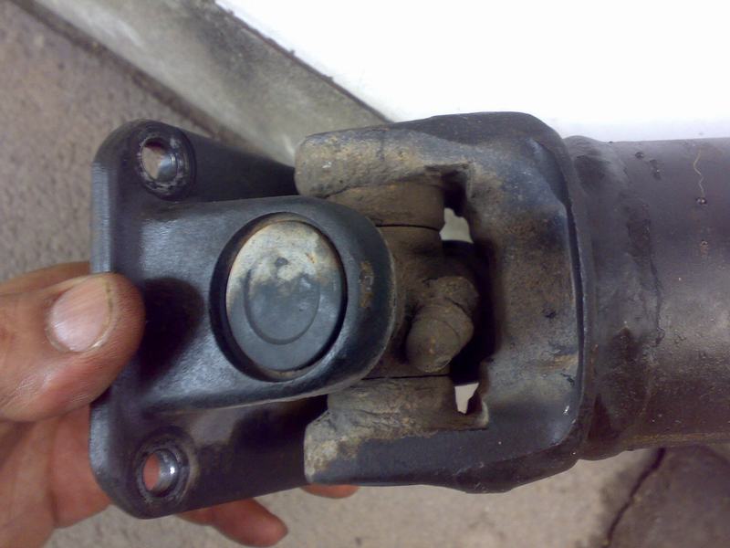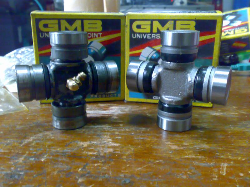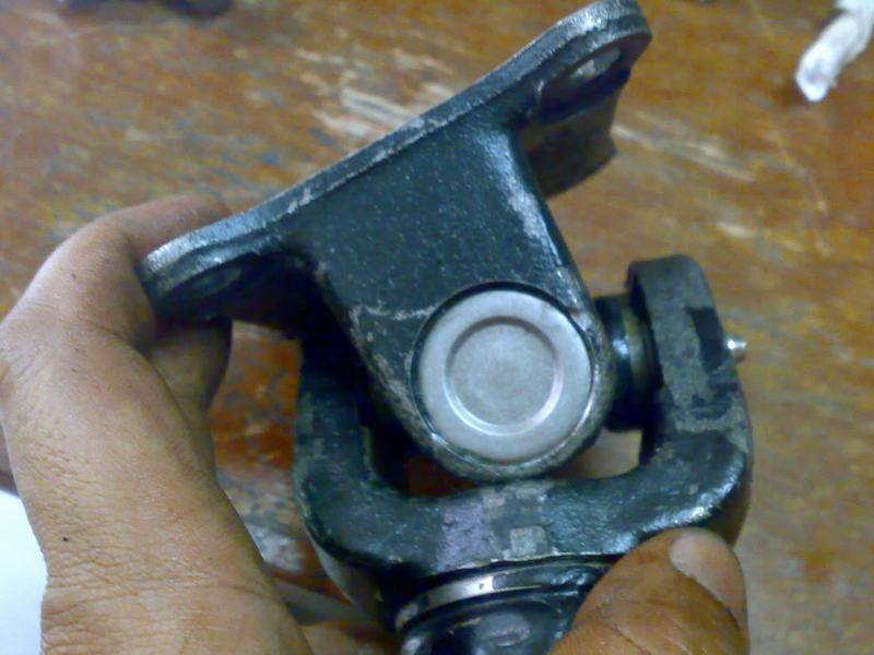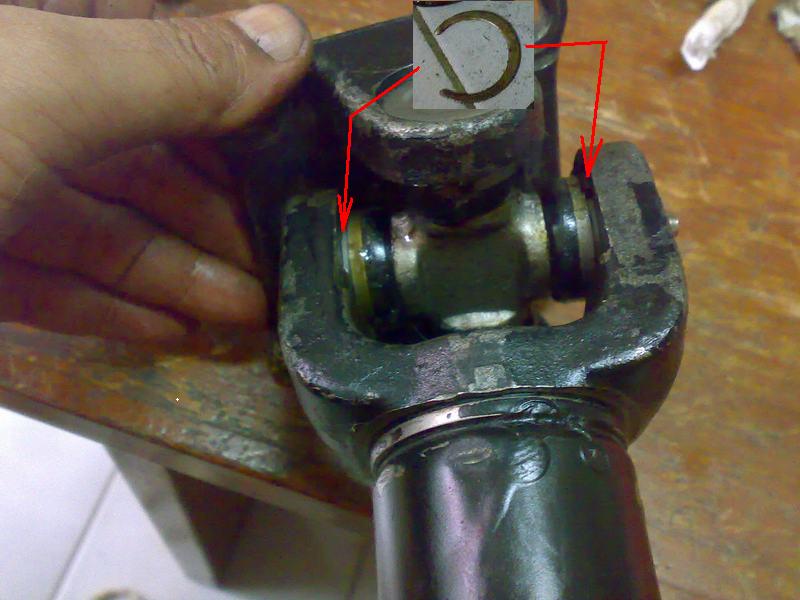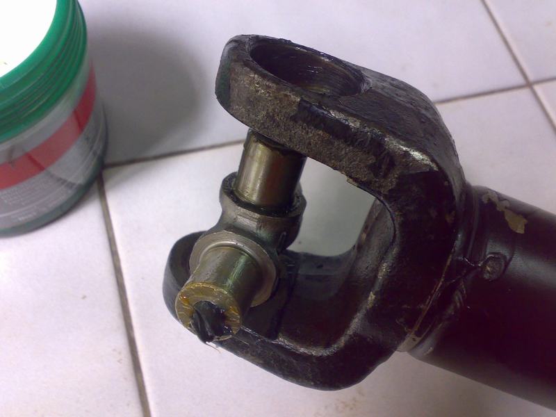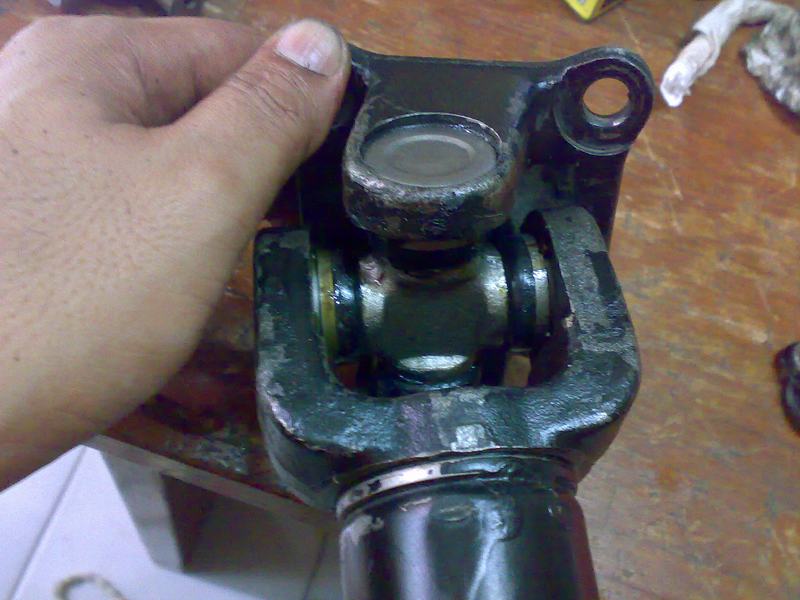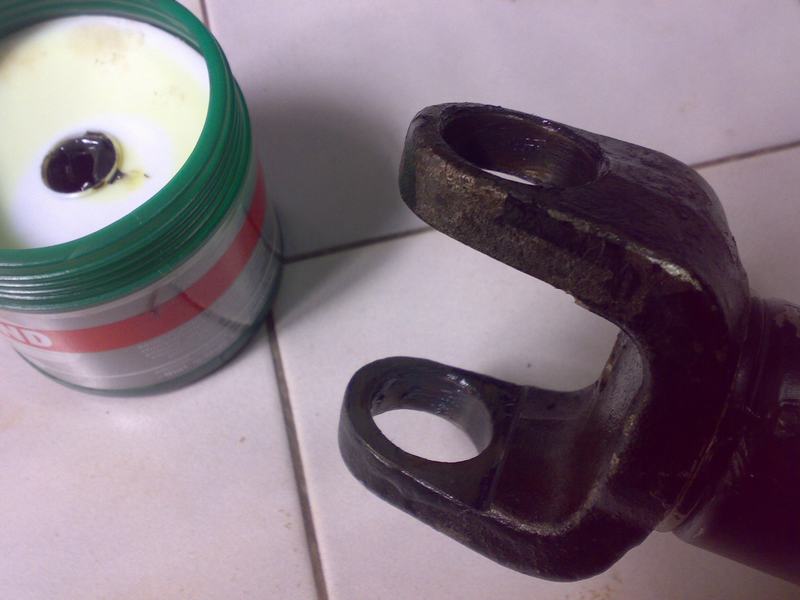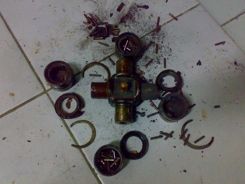 ผมมุดเข้าไปดูสภาพไต้ท้องรถ แล้วเหลือบไปเห็น หัวอัดจารบีที่เพลา ครับ เลยนึกขึ้นได้ว่าตั้งแต่ได้รถมาผมไม่เคยดูแลเจ้าชุดนี้เลย ทั้ง ๆ ที่มันสำคัญพอสมควร เลยเตรียมอัดจารบี พอยกรถลอย มุดเข้าไปเอามือหมุนเพลาดูก็รู้สึกถึงความผิดปกติ มันแปลก ๆ เหมือน ยอย มันไม่ลื่น ลองขยับ ๆ ดูไม่แน่ใจผมเลยถอดออกมาเพลา พอถอดออกมาลองขยับดู ก็พบว่า ยอย ไม่กระดิกเลย แกนนึง .............งานเข้าเลยครับ ตัดสินใจใส่น๊อตคืนที่เดิม ไปถามอู่ว่าเปลี่ยนยอย 4 ตัว คิดเท่าไร ช่าง มาก้ม ๆ ดู แล้วบ่นว่ามันมี 2 เพลารุ่นนี้ ยอยหายากด้วย แล้วบอก 4,000 บาท ค่ายอย 3,200 ที่เหลือค่าแรง เปลี่ยนเลยใหมครับ ช่างถาม ผมตอบทันควันเลยว่าผมไม่มีตังค์ดิพี่ แล้วขับรถกลับบ้านผ่านร้านอะไหล่ ลองลงไปถามราคายอยดู ร้านบอกว่า ยอยเทพ ก็ไม่เกินตัวละ 400 บาท ผมเลยขับรถกลับบ้านมานั่งคิดอยู่ 2 วินาที แล้วหาเครื่องมือ ลุยยยยยยยยยย..................