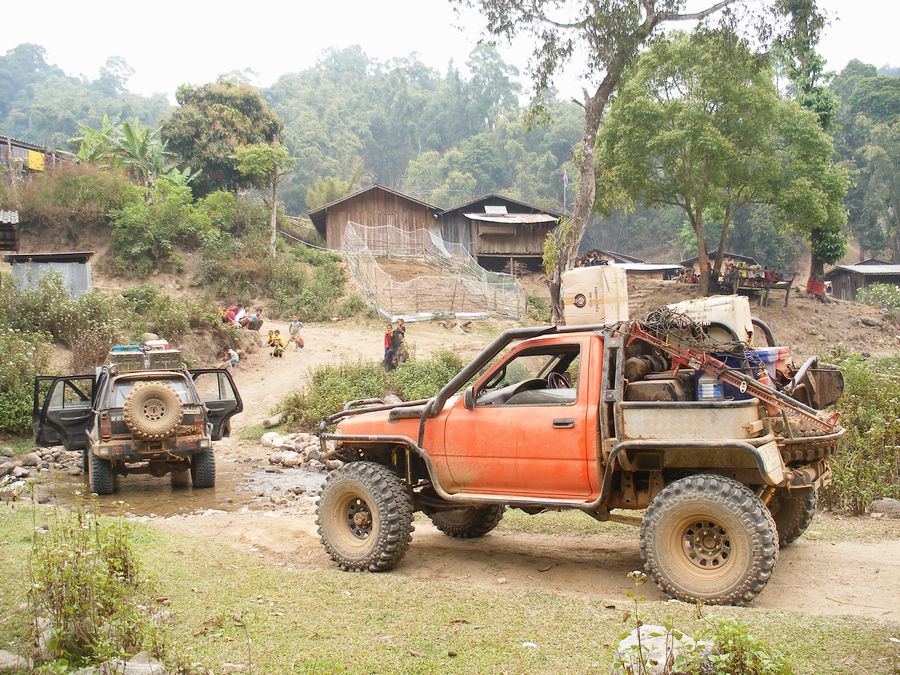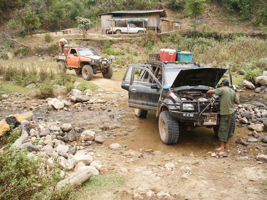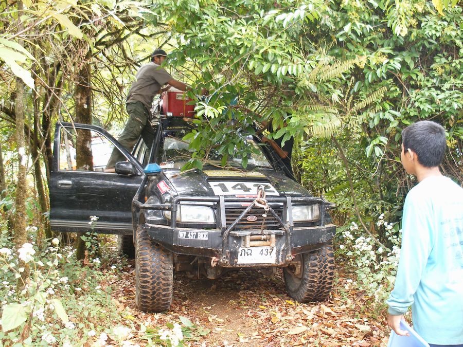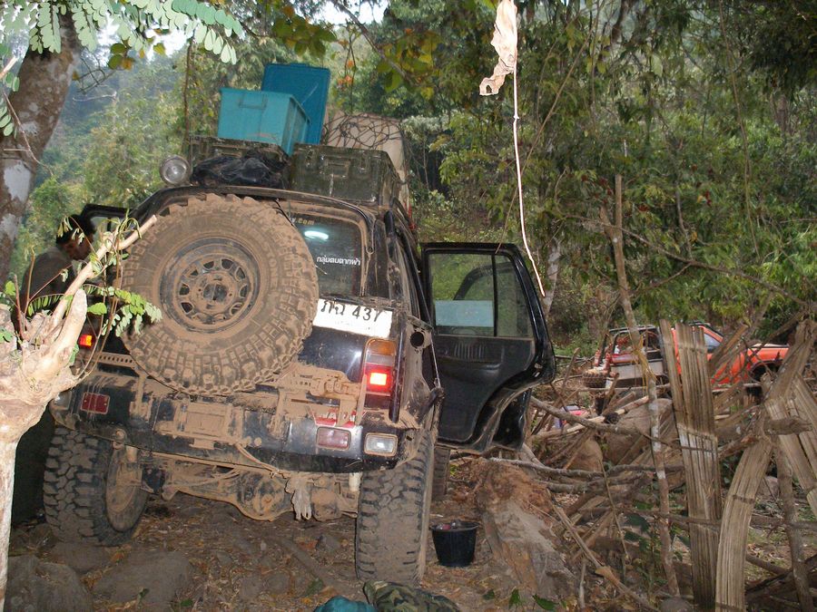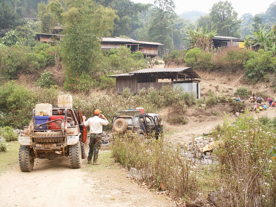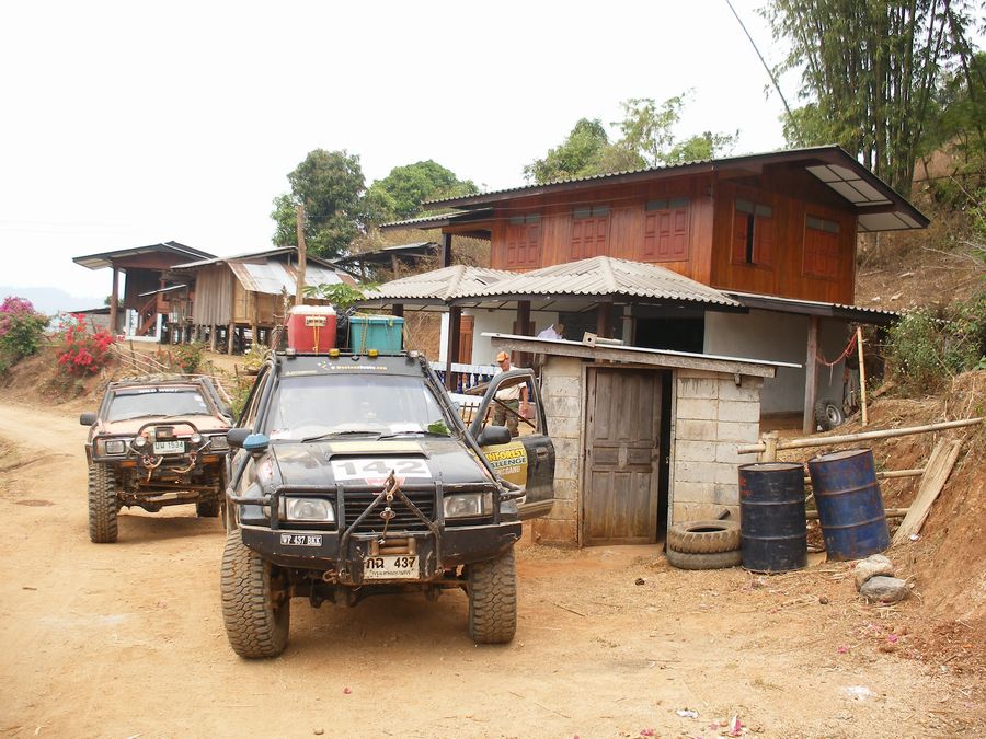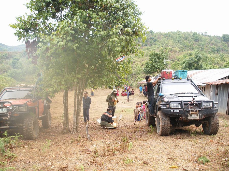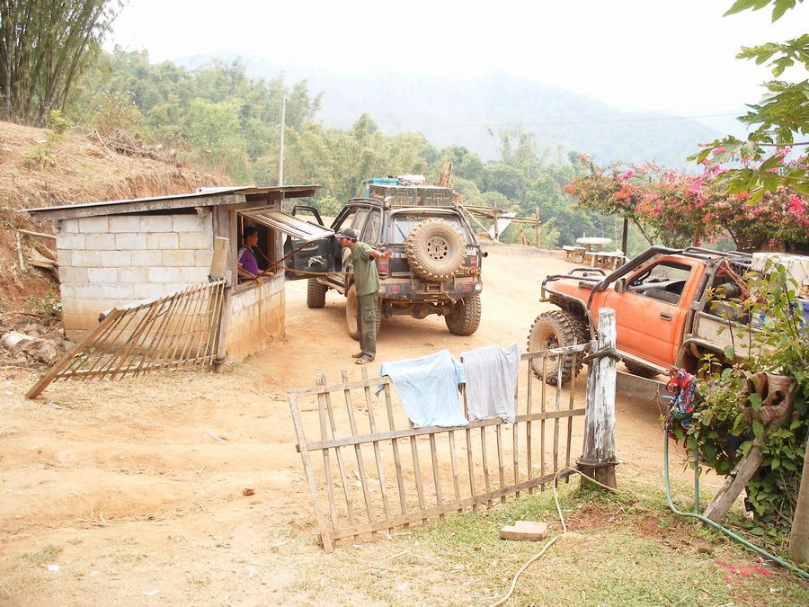 ลากรถลุงร็อดจอดไว้หน้าบ้านชาวเขาแล้ว ชาวเขาแจ้งว่าเลยน้ำขุนสอง...