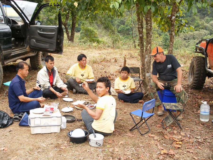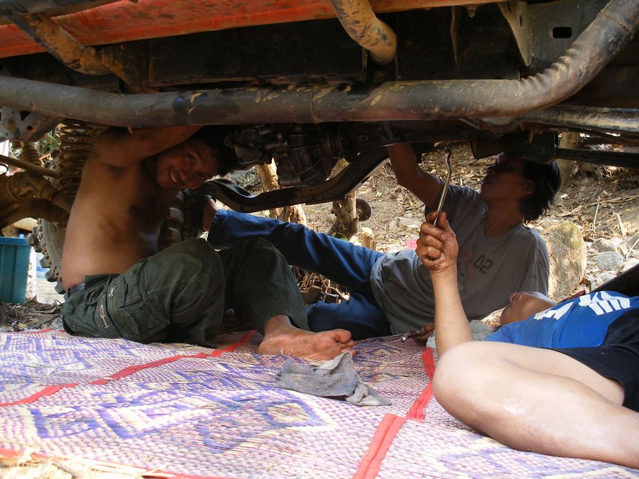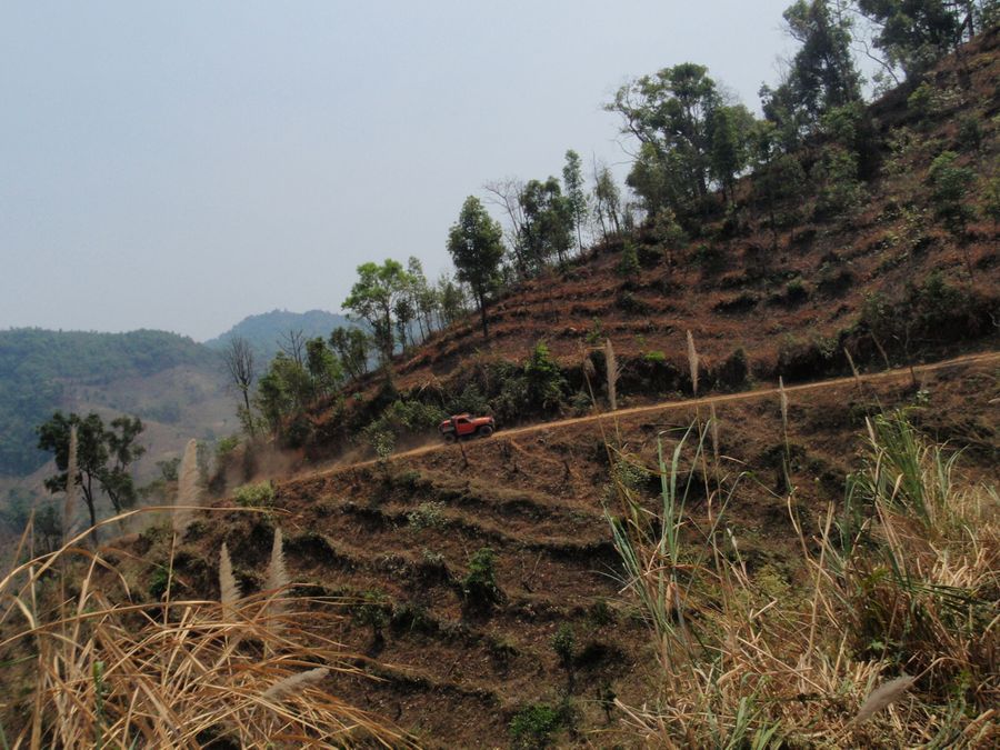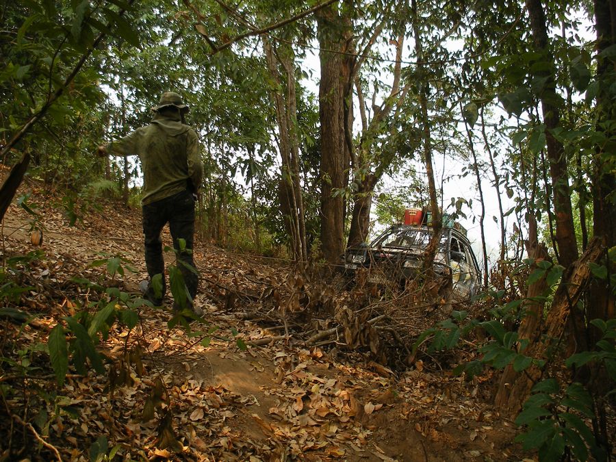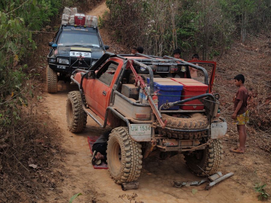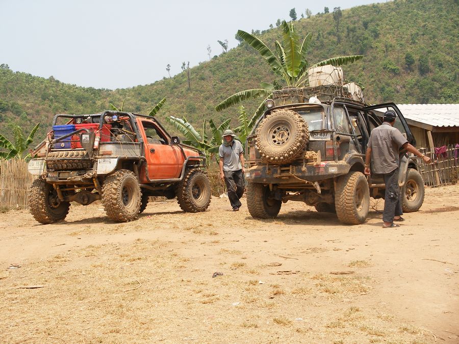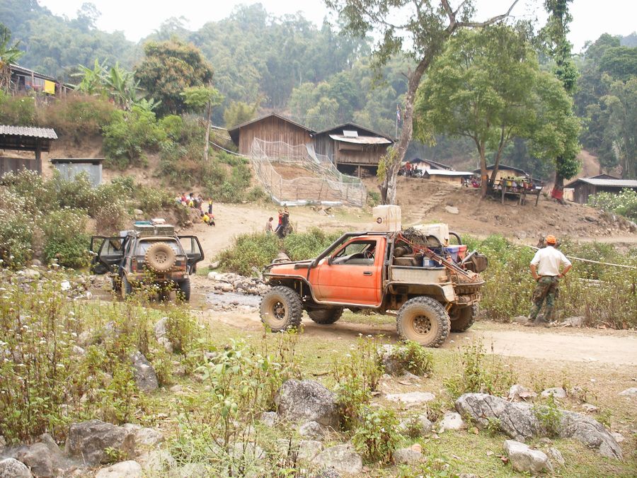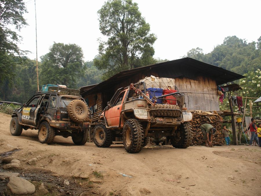 ลากรถลุงร็อดจอดไว้หน้าบ้านชาวเขาแล้ว ชาวเขาแจ้งว่าเลยน้ำขุนสอง...