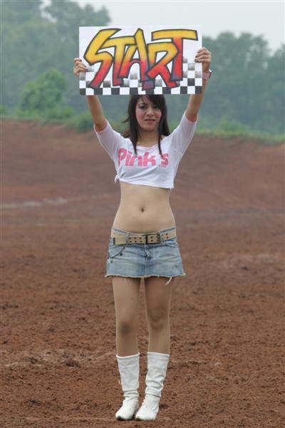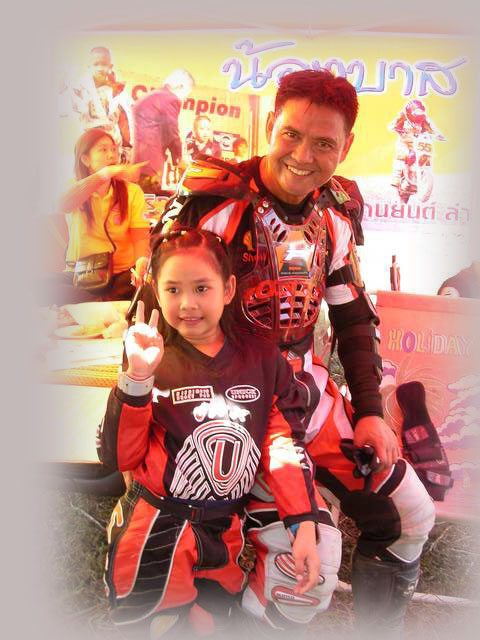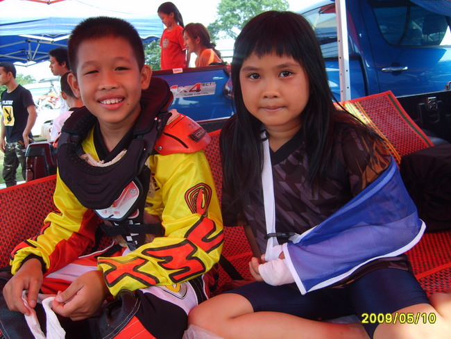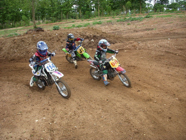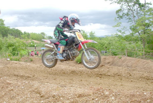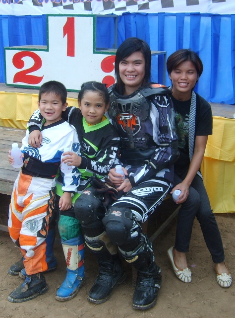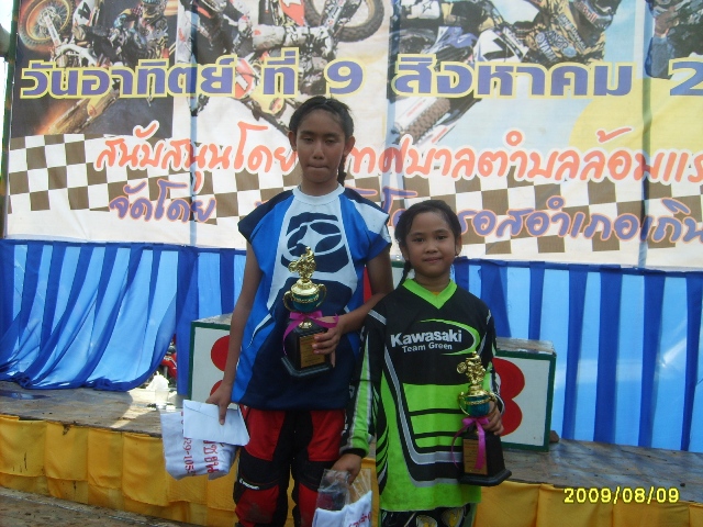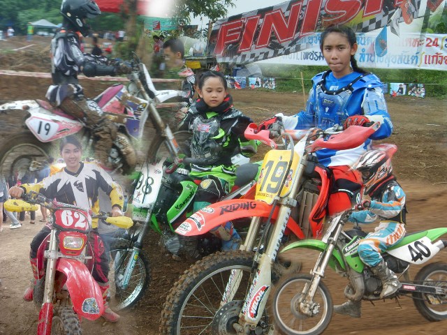พี่คนโตกว่าจาก อ.ฝาง จ.เชียงใหม่ซึ่งใช้รถสูตรฮอนด้า 150 F ขอบล้อ 19 นิ้ว ส่วนเจ้าหนูอิมของผมก็ใช้รถ คาวาซากิ KLX 110 ขอบล้อ 12 นิ้วครับ แค่ขี่ระยะหนึ่งร้อยเมตรออกตัวพร้อมกันก็แพ้ไปแล้วร่วมสามสิบเมตรล่ะครับ นี่เจอเข้าไปประมาณ 8 กิโลเมตร 555 555 555 ต้องขับขี่ขนิดลืมเป็นลืมตายล่ะครับ ก่วาจะเข้าเส้นขัยได้ และวันนี้ก็มีนักแข่งในรุ่นเลดี้เข้าแข่งขันรวม 9 คันครับ....ผมเองก็งง งงเหมือนก้น ไม่รู้เจ้าหนูมันทำได้ยังไง...