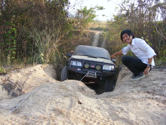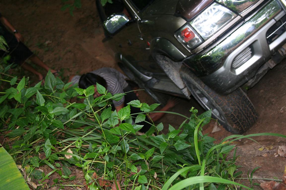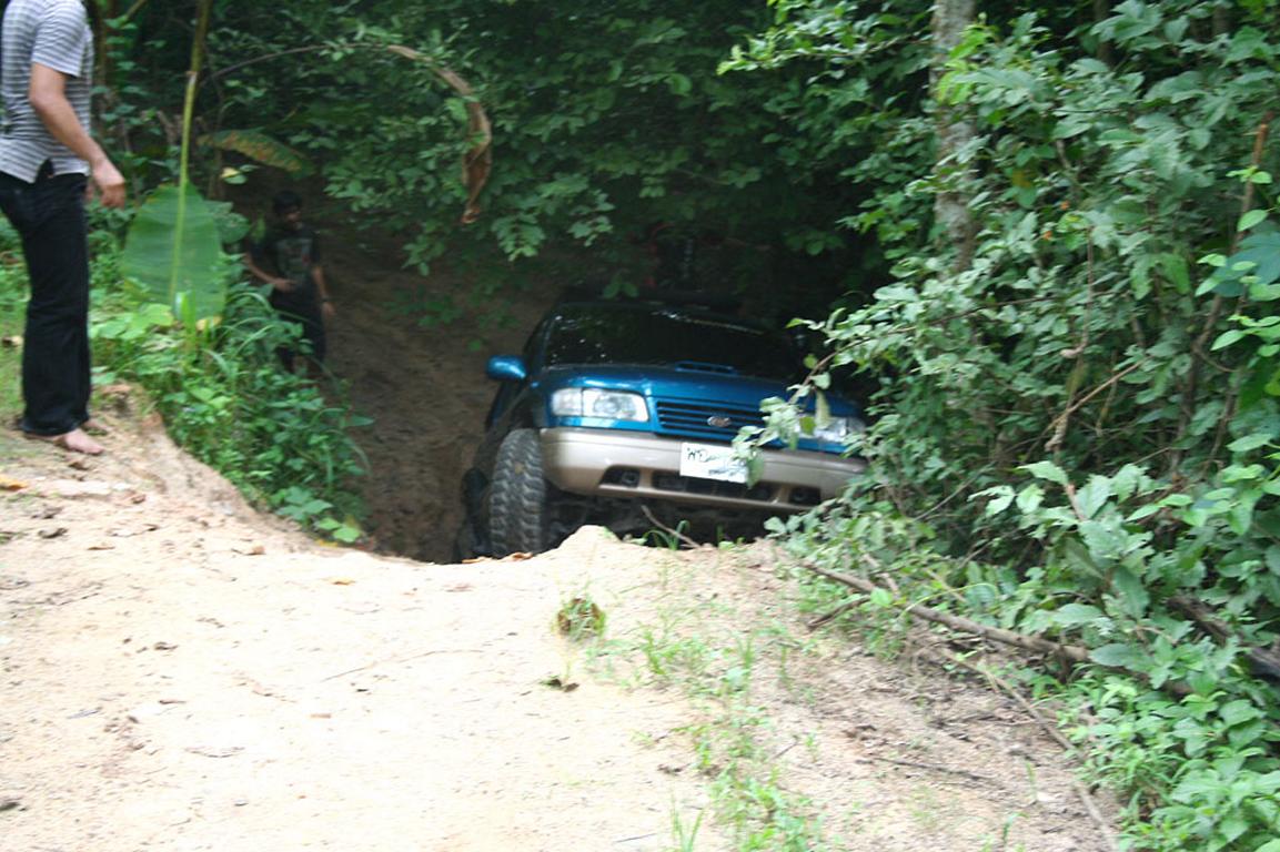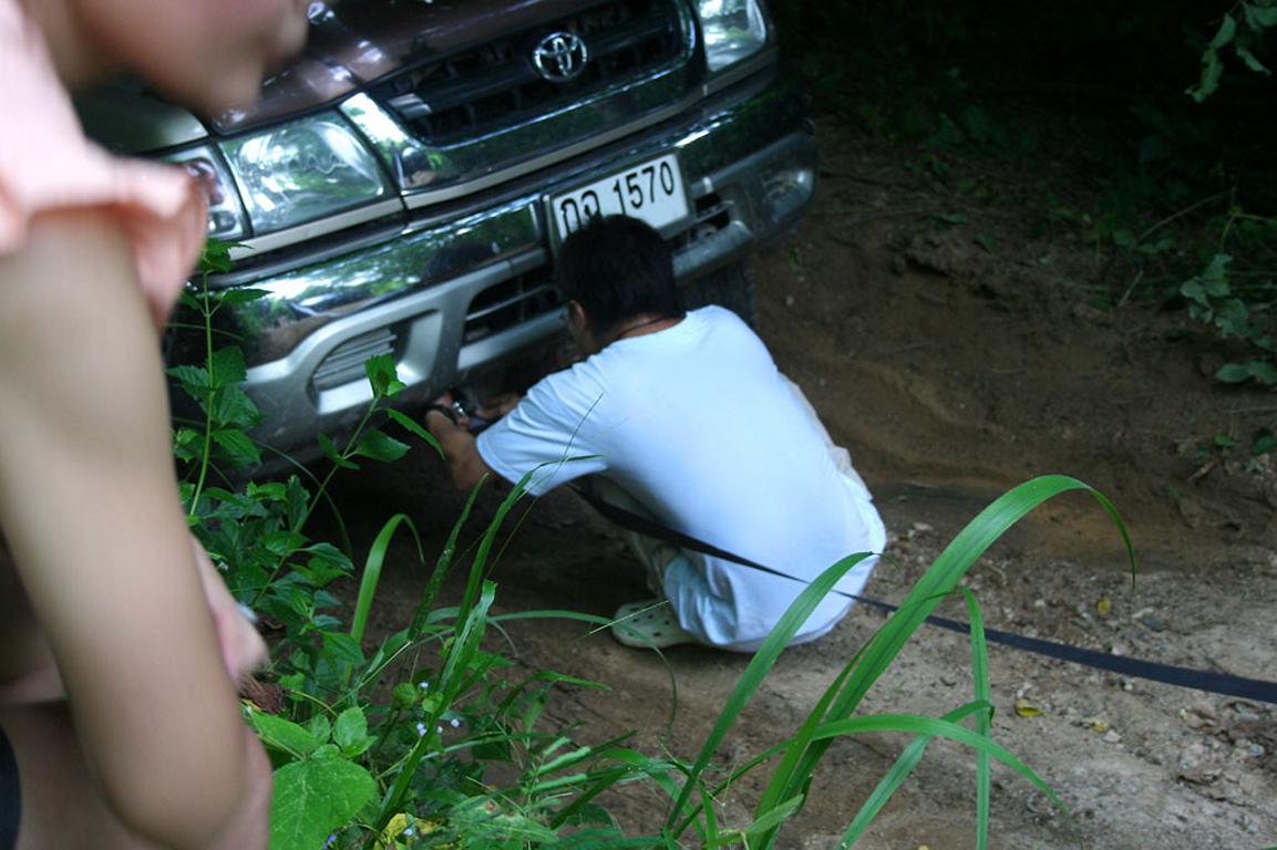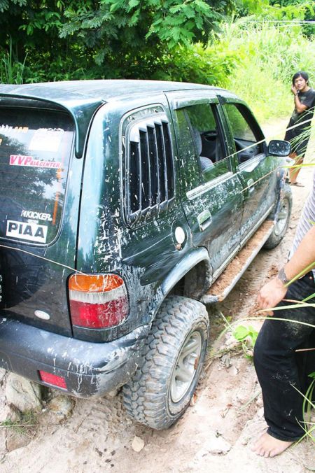รถผมหลังซ้ายตรงใต้ครีบปลาบุบเพราะไลด์บังคับเบียดต้นไม้ รอยท่วมเหมือนเดิมเพราะกำแพงดิน ดีนะเกือบแอ้งแม้งเพราะผิดไลด์เบรกไม่ได้ มันไม่ยอมหยุด