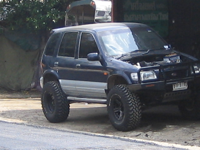 ช่วงล่างเดิมเบิ้ลหน้า ยก body 3นิ้ว ยกช่วงล่าง 3 นิ้วครึ่งรวม 6 นิ้วครึ่ง ด้านหลังสปริงเดิมใส่โช๊คปรับ 7 ระดับวางเครื่อง 1 j ge v 6 2500 cc.เกียร์ เซิพท์ auto ยาง bf 33 /12.5 /15 ความเร็วปลายที่หน้าปัด 140-150 กม/ ชม. ช่วงล่างร่มโพธิ์การฃ่าง (ช่างเทพ)