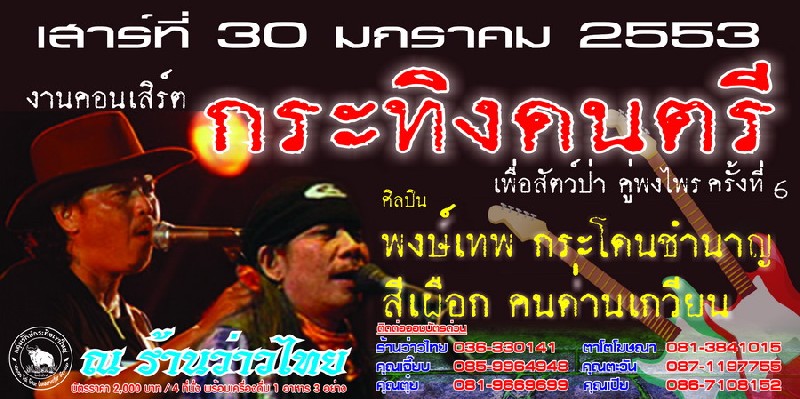 คอนเสิร์ต....กระทิงดนตรี เพื่อสัตว์ป่า คู่พงไพร ครั้งที่6 เสาร์ที่ 30 มกราคม 2553