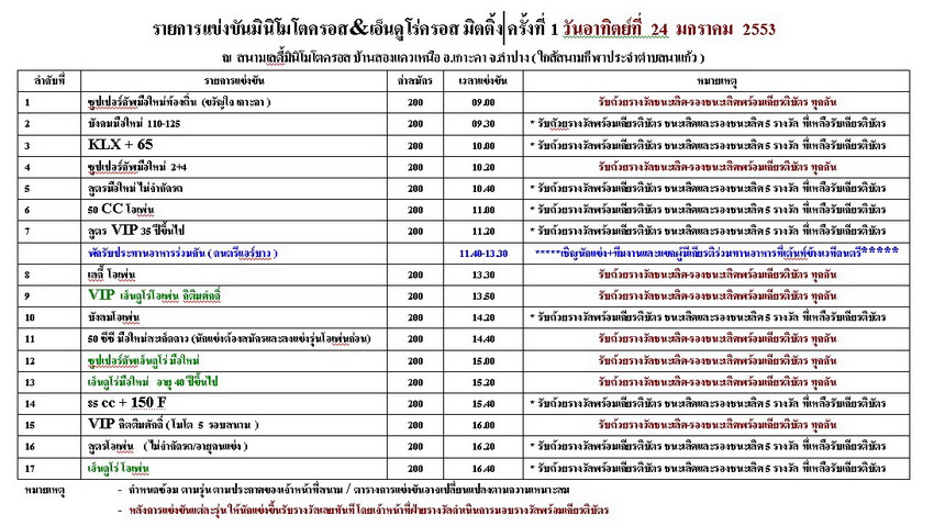 เชิญพี่น้องชาวเกียที่รักทุกท่านครับ เสาร์-อาทิตย์ หลังปีใหม่วันที่ 24 มกราคม 2553 หากได้ขึ้นมาเที่ยวทางเหนือเชิญแวะร่วมงานแข่งขันมินิโมโตครอสแบบมิตติ้ง ที่สนามของผมครับ อ.เกาะคาลำปาง .....สมาชิกที่มีทริปพิเศษขึ้นเหนือช่วงวันเวลาดังกล่าวขอเรียนเชิญนะครับ