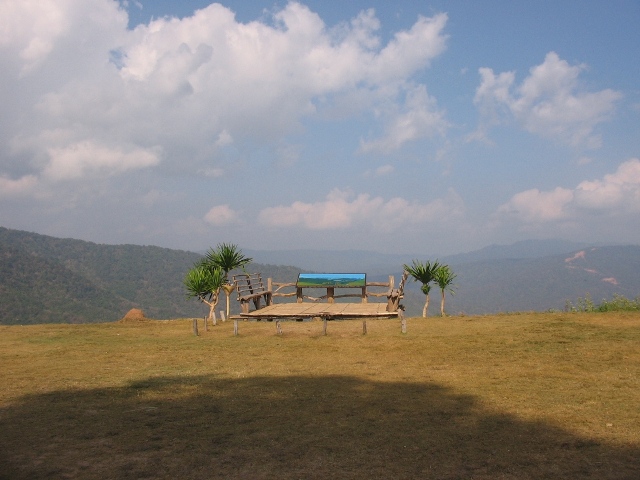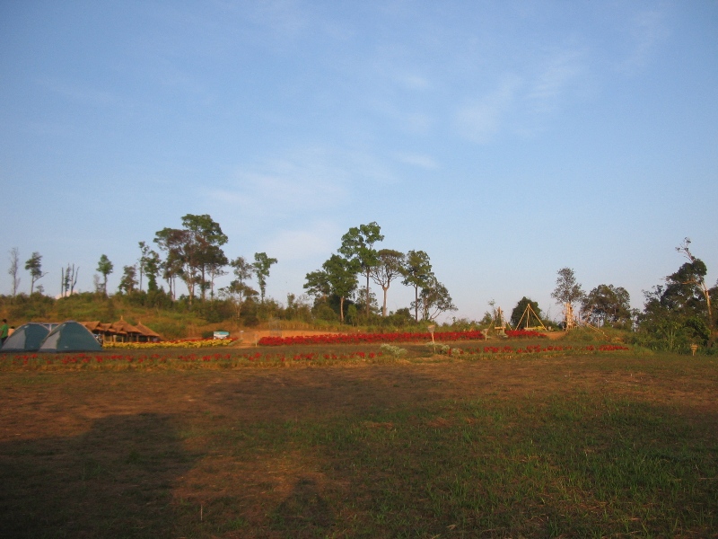 คำตอบที่ 51 หลังจากปีนเขา 1000 เมตรจากระดับน้ำทะเล ก็เข้าสู่ บ้านร่มเกล้า ผ่านบ้านร่มเกล้าไปประมาณ 1 กม. ขวามือก็ถึงแล้ว ศูนย์พรรณไม้ร่มเกล้า ปีนขึ้นไปอีกที่ระดับ 1100 เมตรกว่าๆ ก็ถึงลานสน ..จัดแจงกางฟลายชีท บนลานสน เสร็จก็ได้รับลมเย็นๆบนยออดดอย