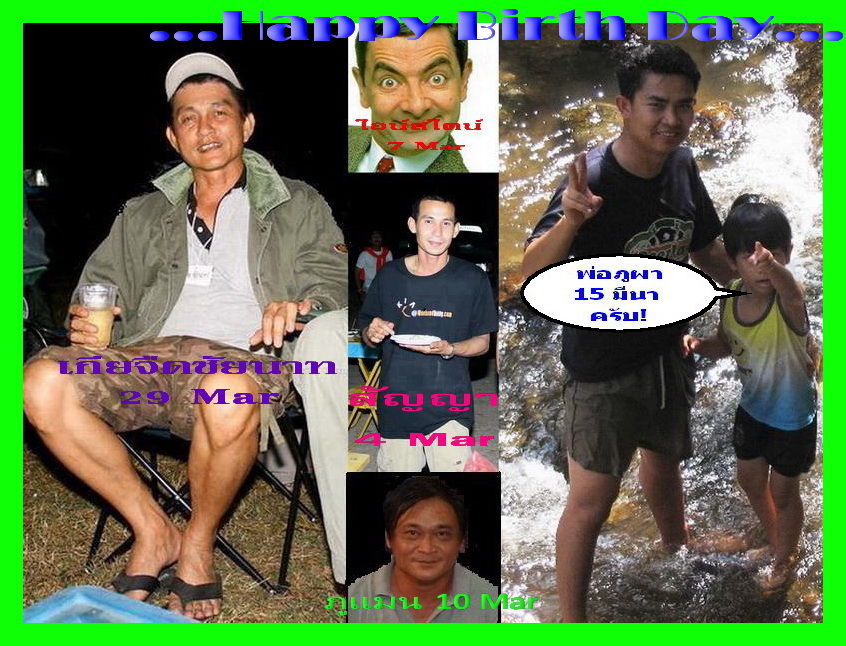 คำตอบที่ 9 Happy Birthday มีความสุข ความเจริญ พี่ภูแมน กั๊ก ๆ พี่สัญญา ลูกสาวสวย พี่ภูพา คนภูเขา และ คุณไอสไตน์ รวมทั้งผู้ที่เกิดเดือนนี้ด้วนนะครับ