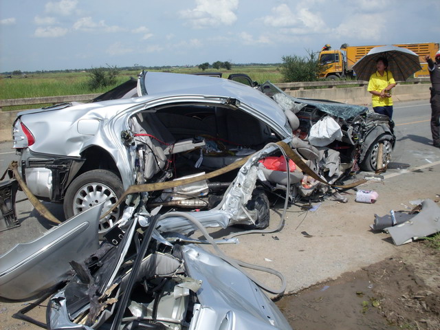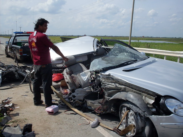 เมือ่วันที่12 กันยายน 2552 เวลา 12.00 น. รับแจ้งเหตุ. ว.40 บริเวณแยกมิยาสว่า เส้นทาง บางบาล-ผักให่ ที่เกิดเหตุพบรถ เบนย์ สี บรอน ป้ายแดง ทะเบียน ศ-6019 กทม. ชนลาวสะพาน ทำให้มีผู้ได้รับบาดเจ็บ 3 ราย พลเมืองดีนำส่ง รพ.ผักให่ และเสียชีวิตที่ รพ.ผักให่ 1 ราย ชื่อ นาย พุฒพงศ์ โลกิจสถาพร บาดเจ็บ 2 ราย 1 น.ส.สมใจ โลกิจสถาพร 2. หญิงไม่ทราบชื่อ