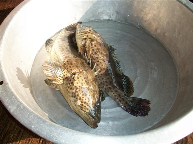 คำตอบที่ 30 ปลาเก๋าอีก 2 ตัว ตัวเกือบ 2 กิโล ค่าของทะเลมือนี้รวม 2900 บาท ก็ยังถือว่าถูกมาก