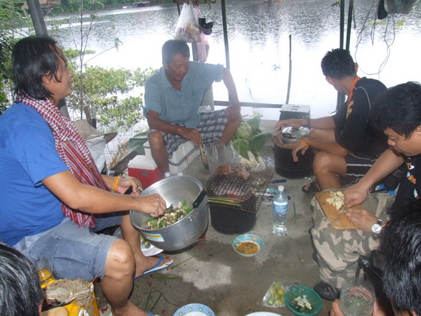 คำตอบที่ 17 พี่โต้ง ฅนหาหอย ส่วนลุงชัยและพี่เสธ กำลังย่างหมู-เนื้อย่างให้พวกเราทาน ส่วนฅนบ้า500 กำลังหั่นกระเทียมเพื่อทำน้ำจิ่ม แม้เป็นทริปแรกของเขา แต่ก็ได้ใจไปเยอะ