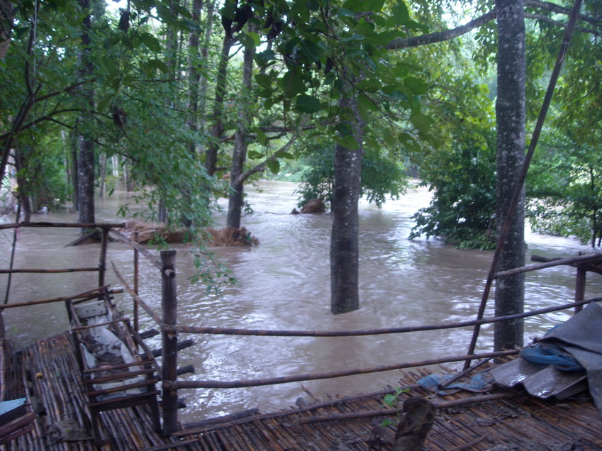 เพราะขนาดที่ไร่วีคเอนด์ วันนี้น้ำยังขึ้นมาถึงศาลาใหญ่ (ในรูป)แล้ว