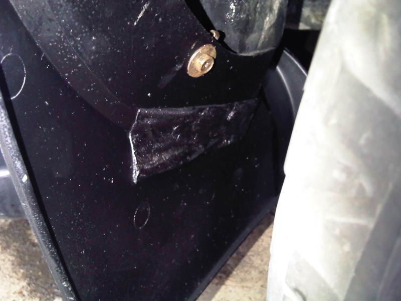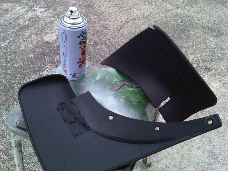 เนื่องด้วยยางกันโคลน (เรียกถูกหรือเปล่าก็ไม่รู้) มันขาดมาเกือบครึ่งเวลาวิ่งก็แกว่งไปมา ก็ว่าจะหาของใหม่มาเปลี่ยนแต่ยังไม่มีเวลาและเงินทุน (ประเด็นหลังเป็นหลัก อิ อิ) ก็เลยซ่อมเองก่อนแล้วกัน