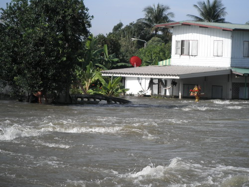 ข่าวล่าสุดที่ หมู่บ้านเกิดชนะ น้ำขึ้นสูงถึงศาลพระพรหมที่บ้านแล้ว (น่าจะประมาณ คอของผม ผมสูง 170)