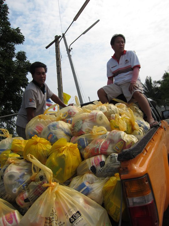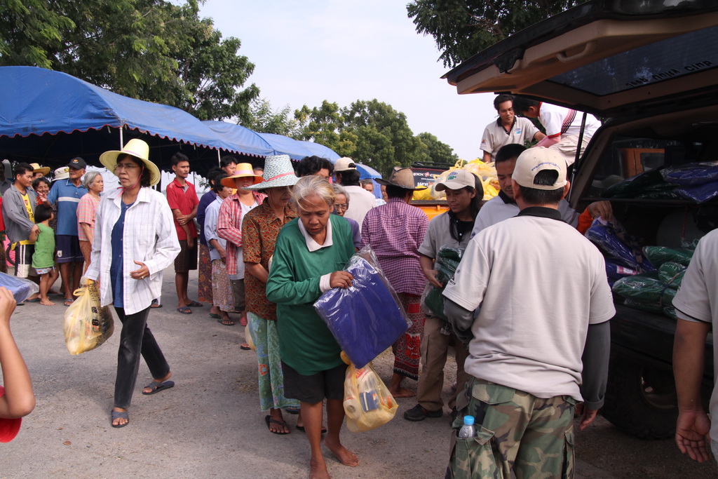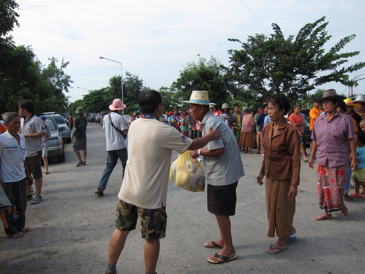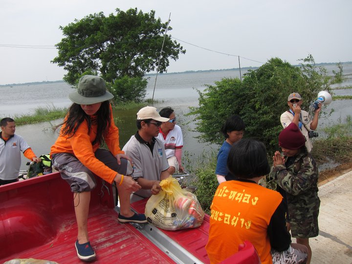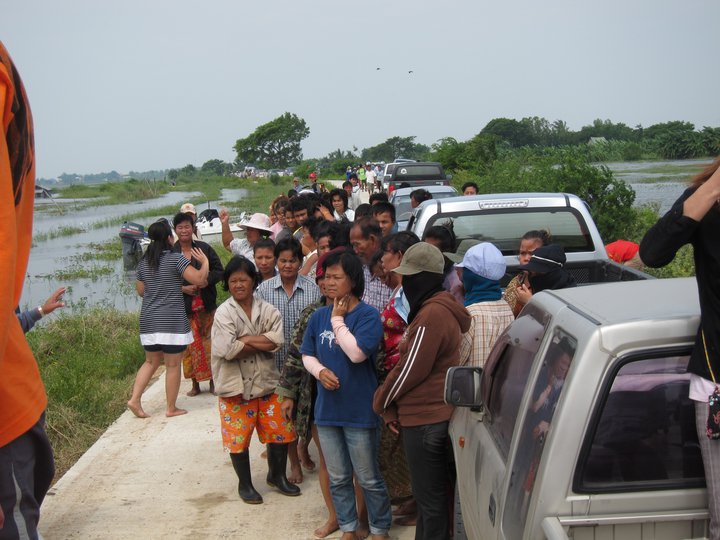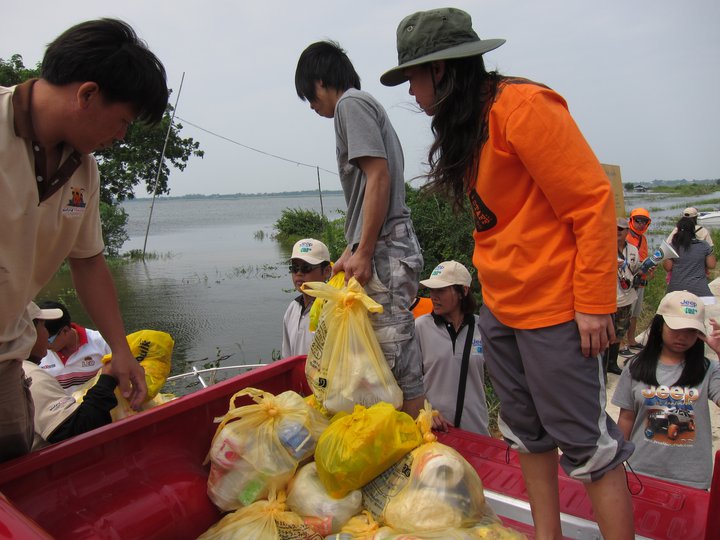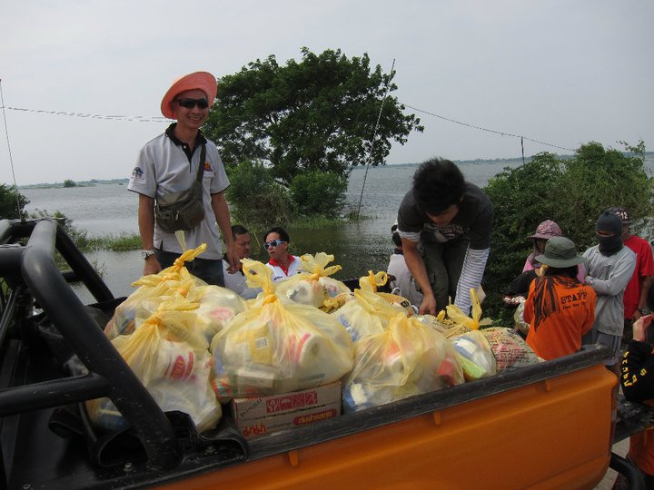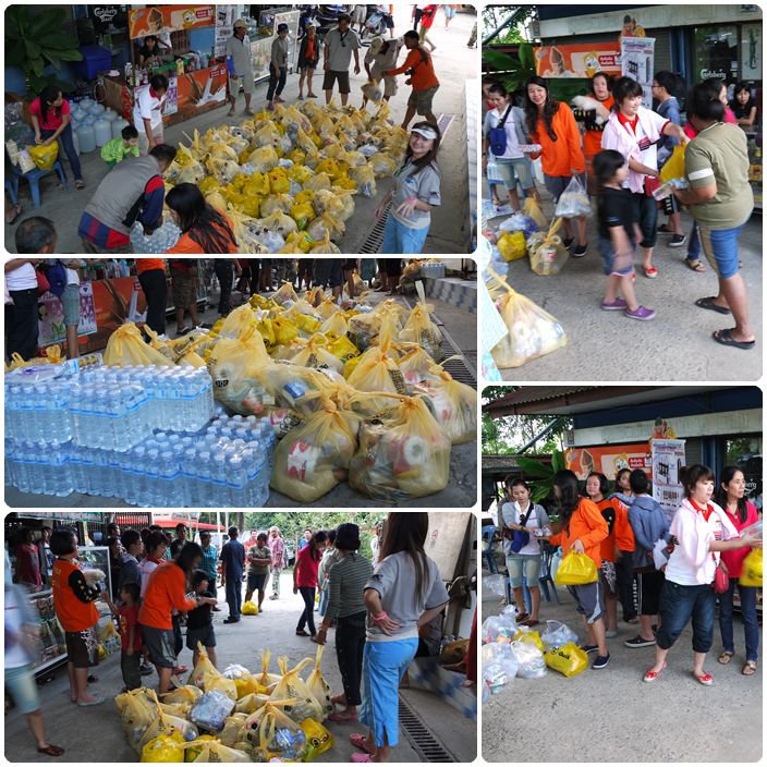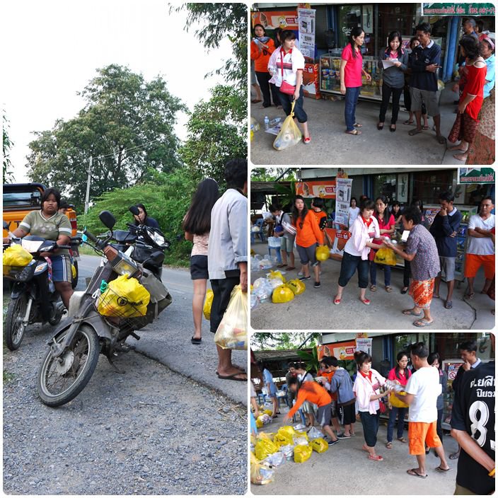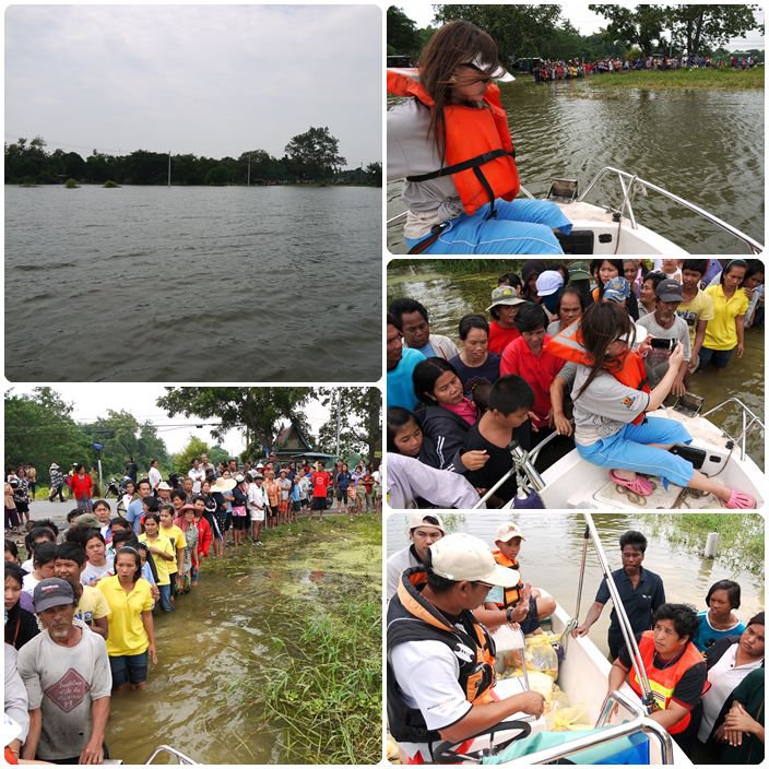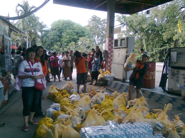 ขอเป็นกำลังใจให้ชาวบ้านทุกจังหวัดของประเทศที่ประสบภัยน้ำท่วมในขณะนี้ ชาวบ้านบางคนบ้างก็อยู่บ้านทั้ง ๆ ที่มีน้ำล้อมรอบออกไปไม่ได้ บ้างมีเรือก็สามารถพายเข้าหาฝั่ง บ้างมีเรือแต่ก็ต้องอยู่เฝ้าบ้าน บ้างไม่มีที่อยู่เลย ถึงของที่เราแจกให้ เป็นเพียงส่วนหนึ่งที่จะประทังชีวิต แต่ก็สามารถทำให้อยู่รอดไปอีกมื้อ น้ำใจหลั่งไหลรวมกันก็ได้หลายมื้อ ทุกมื้อมีความหมาย ขอให้ได้กินอิ่มทุกมื้อจนกว่าสถานการณ์จะกลับสู่สภาวะปกตินะคะ คนไทยไม่ทิ้งกัน