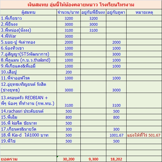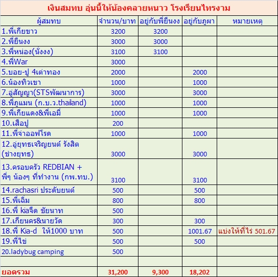 **มีเศษจำนวนของชุดสุขภาพเหลือบางส่วน มอบให้กับครูที่ รร.เก็บไว้เลย เช่น ยาสระผมเด็กโต 5 ขวด, ยาสระผมเด็กเล็ก 3 ขวด, สบู่ 2 ก้อน, แปรงสีฟันเด็กโต 5 อัน, ยาสีฟันเด็กโต 5 หลอด