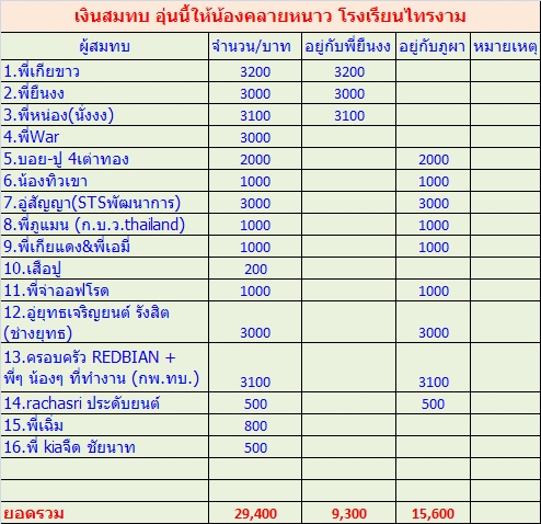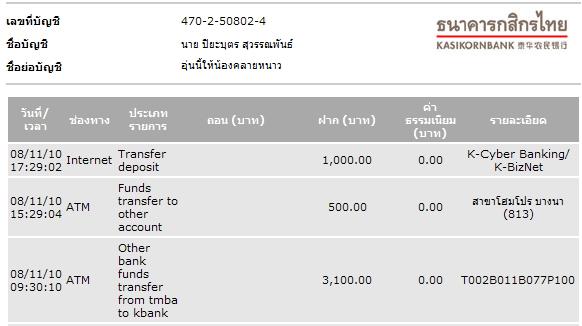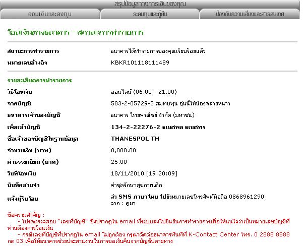 รับเงินโอนบริจาค จากภูผา เพื่อซื้อชุดสุขภาพ 8,000 บาท
