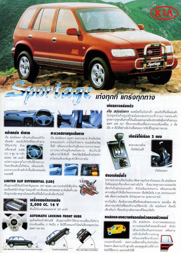 ผมก็มี KIA SPORTAGE มือ2 ไม่รู้ครับยกสูงกี่นิ้วแต่ก็อยู่บนยาง 30 ได้ครับ (AUTO) เป็นรถเกียออโต้ซึ่งวิ่งได้เพียงแค่ 90 ก.ม./ช.ม เต็มที่แล้วครับพอปิดแอร์แล้วก็วิ่งเร็วหน่อยครับ 110 ก.ม/ช.ม. ตอนแรกยังไม่พอใจครับนึกว่าแรงม้าจะอยู่ที่ 170-180 แรงม้าสะอีกมารู้เมื่อสายไปเสียแล้วก็เพราะแฟนผมไม่ค่อยชอบรถไม่แรงเขาชอบรถที่วิ่งได้ 130-140 ผมก็เลยต้องขายเพราะแฟนไม่ชอบใช้ๆได้ไม่ถึงปีเลยจริง ๆ แล้วผมยังรักรถเกียคันนั้นอยู่เลย เป็นผม ผมพอใจตั้งแต่ 60-80 แล้วครับ พอผมขายไปแล้วก็ไปซื้อ TOYOTA SPORIDER D4D 3000 COMMONRAILทีนี้ถูกใจใหญ่ วิ่งได้ 160-170 ยังไม่พออีกเพราะเคยวิ่งบนมอเตอร์เวย์แล้วสู้ FOTUNER ไม่ได้แพ้ที่ 170 แฟนผมบอกว่าอย่างงี้สงสัยต้องเปลี่ยนเครื่อง 2JZ-GTE ผมรีบบอกเลยว่าถ้าเปลี่ยนเครื่องเมื่อไหร่จะกลับไปใช้เกียคันเดิมเขาบอกว่าไม่เอาดีกว่า แต่ตอนนี้ผมรวมเงินที่จะมาซื้อเกียแล้วแต่ผมไม่บอกให้แฟนรู้ใจผมชอบเกียมากกว่ารถรุ่นอื่นอีกเพราะเป็นรถในฝันของผม ยิ่งผมเห็นรถของคุณปูดำเท่าไหร่ผมก็ยิ่งอยากได้เกียมากเท่านั้น ตอนนี้ผมหางานทำเพิ่มมากเลยภายในปีนี้ผมต้องได้เป็นสมาชิกเกียแน่นอนรับรองครับเพื่อนๆชาวเกียได้เจอกันแน่ครับแต่ตอนนี้ยังไม่มีรถเกียก็ขอเป็นคนติดตามก่อนนะครับ