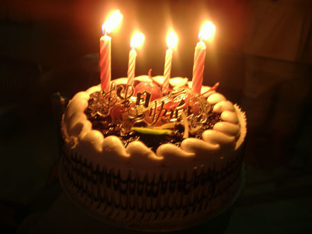 จึงได้มองดูที่เค้กซึ่งมีคำอวยพรของตนเขียนไว้ว่า