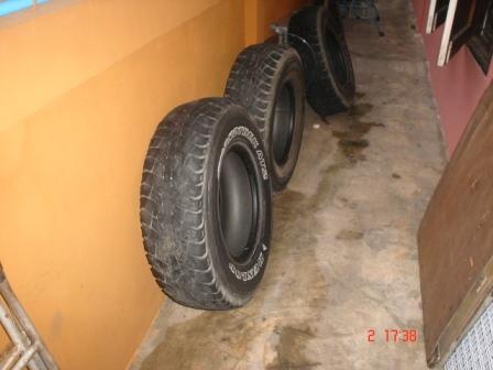 เป็นยางเก่าเพิ่งเปลี่ยนออกวันนี้ ปี 02 สองเส้น ปี 03 สองเส้น ตอนนี้อยู่ที่บ้านผมมีใครจะซื้อเอาไปปลูกอะไรไหม??จะได้สะสมเงินเข้าชมรม ให้ท่านประธาน เพราะยางชุดนี้ ประวัติมันคงยาวไกล ผมได้มาจากท่าน กีวี่ อีกทีเหมือนกัน ได้ซักเส้นละ ห้าสิบบาทก็ยังดีน่า